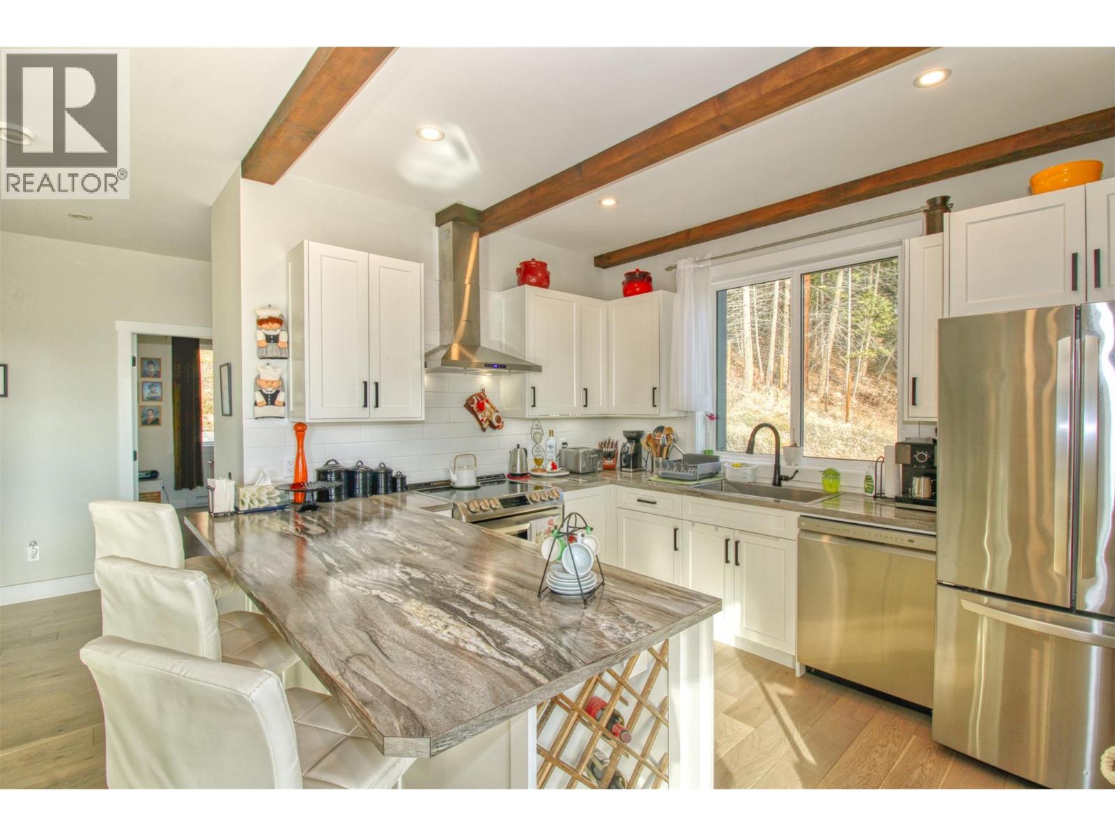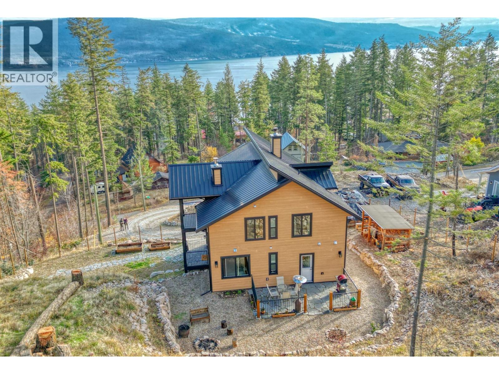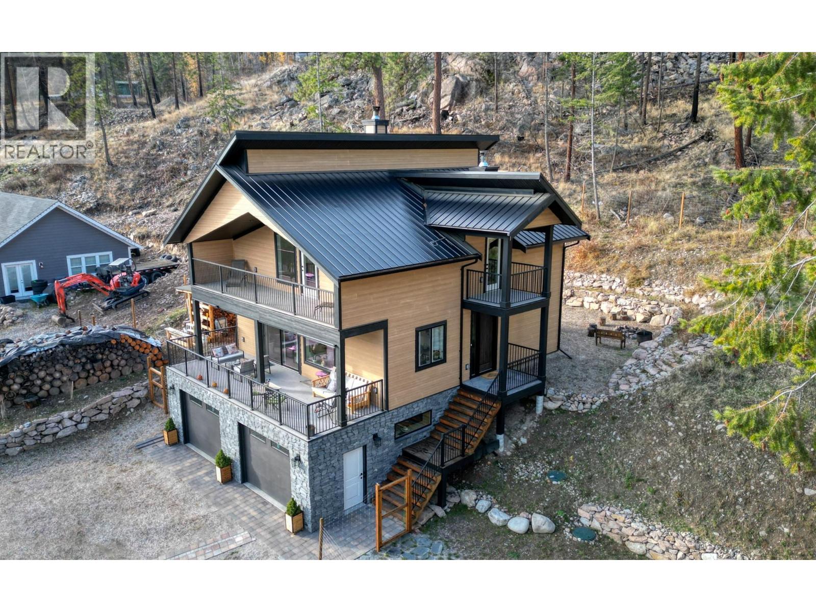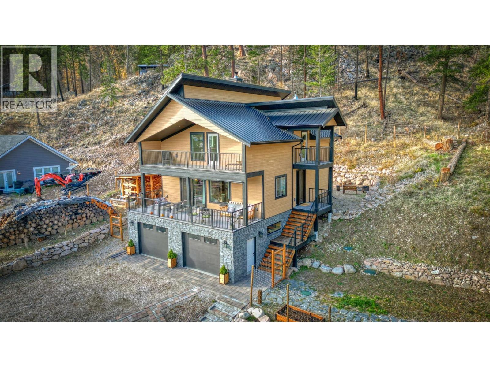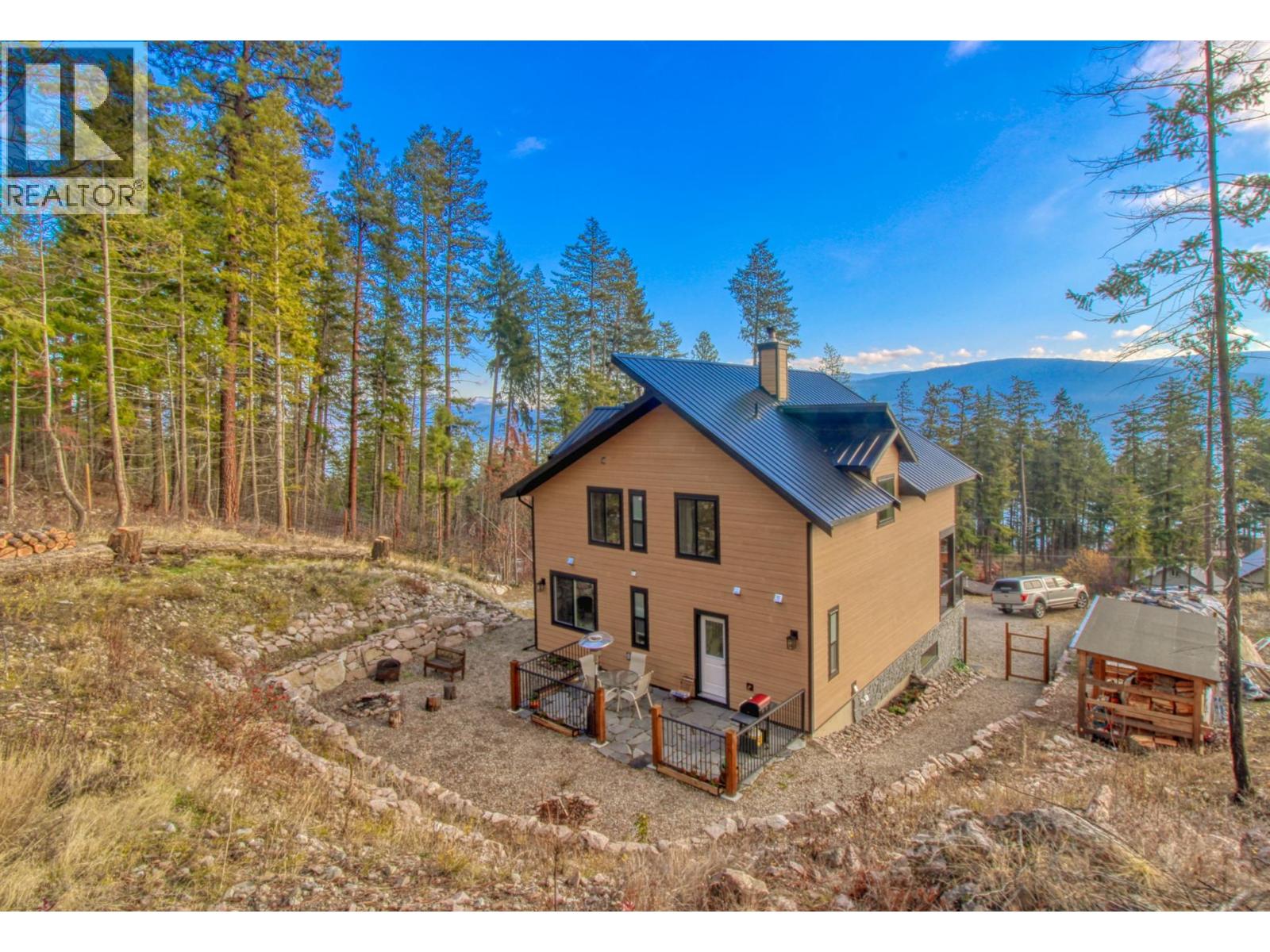 STUNNING Contemporary Custom Home, beautifully built & maintained has to be seen in person to be appreciated . . . Huge amount of parking space . . . Okanagan Lake views over the trees . . Large covered decks plus Patio in this very Private half acre location . . . SAUNA room with it's own covered balcony on top floor . . . Centrally located WOOD STOVE for cozy living & low heating cost through the winter . . . High ceilings . . . Worry-free Metal Roof . . . Main floor with Open, Airy Living, Dining, Kitchen, Primary bed with en-suite, Laundry Room, additional half bathroom, Large covered deck, walk out to private rear patio. . . . Top floor with two more bedrooms, bathroom, Large open loft area, covered deck, Sauna with it's own deck to cool off. . . Walk down from main to Basement/Garage with large partially finished area for Hobby room, Man/Girl Cave or extra parking for your favourite toys . . . Outside also has a fenced area ideal for the keen gardener, large wood storage shed. . . . The community of Killiney Beach has many activities at their community hall just down the street plus several public beaches, boat launches and Westshore Community Park with even more outdoor events . . . (id:2469)