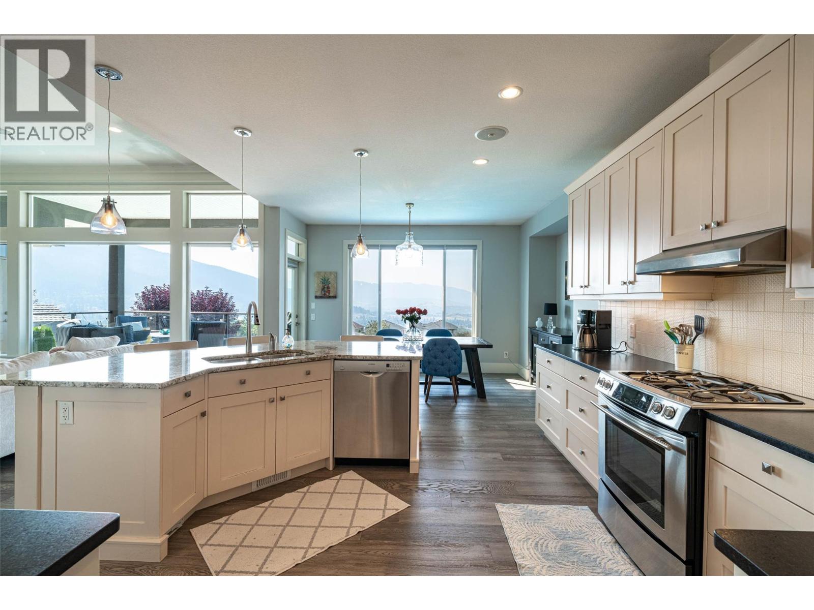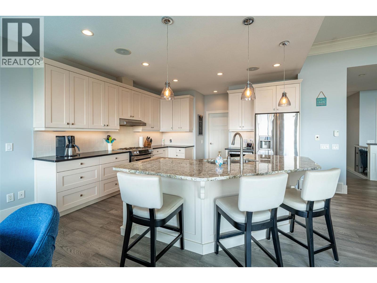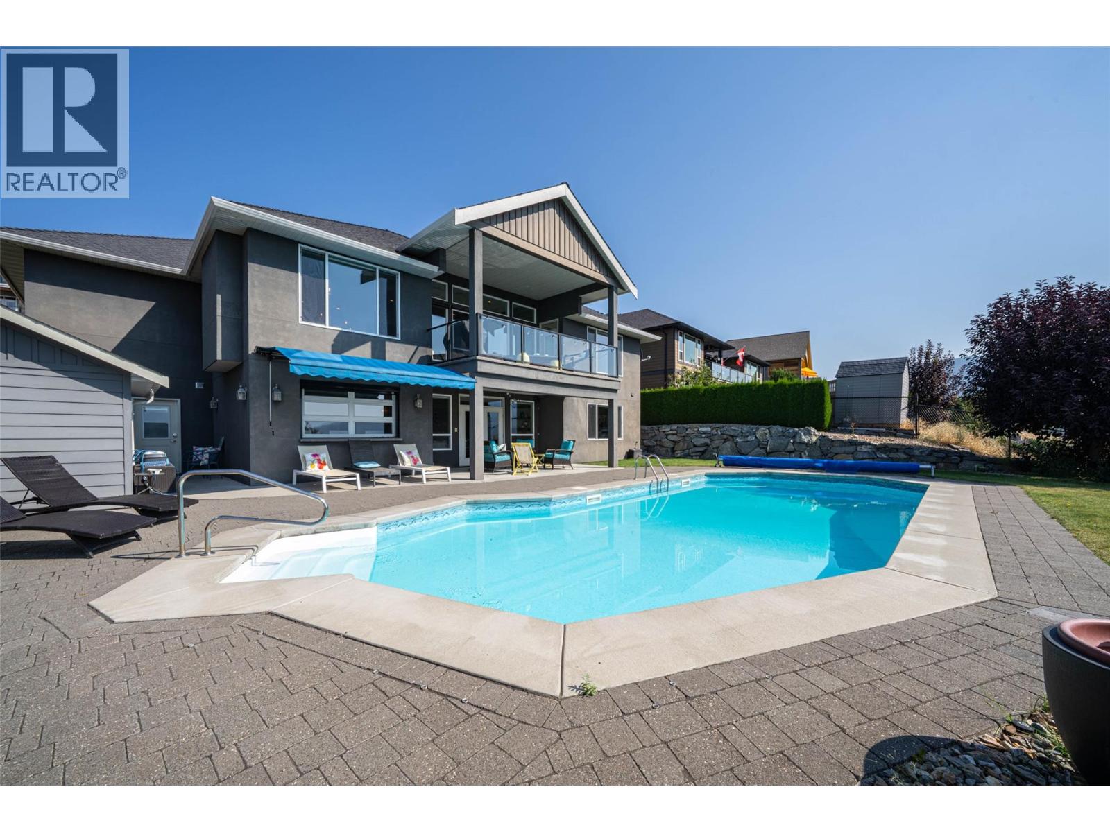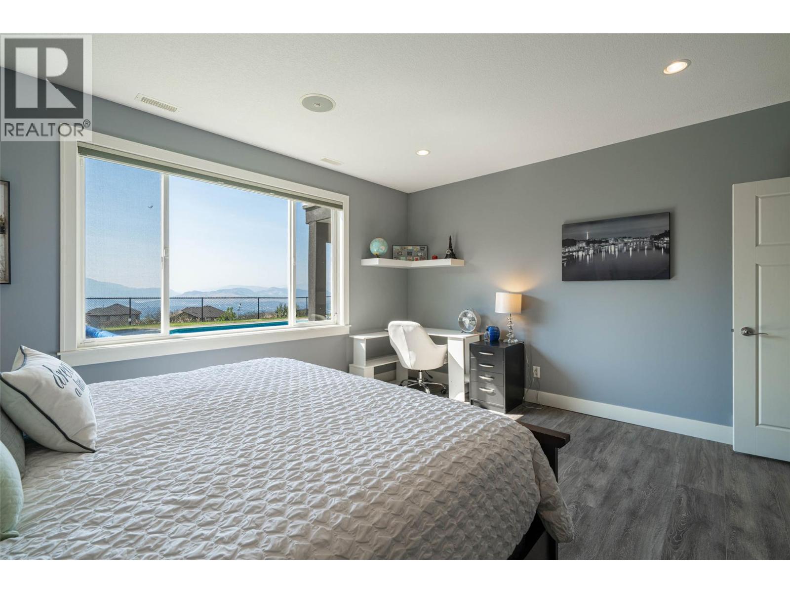 Desirable floor plan, pool, suite and stunning home located in the highly desirable community of the Foothills! Perfectly positioned with walking trails outside your door. Step inside this rancher to a grand entry with soaring ceilings and expansive windows that showcase breathtaking views of the city, Kalamalka Lake, and Okanagan Lake. The open-concept main floor is light and airy, featuring engineered hardwood, a stone gas fireplace, and a chef’s kitchen complete with granite counters, stainless steel appliances, and a walk-in pantry. Step out onto the deck to enjoy your morning coffee against the incredible backdrop. The main level also offers a versatile office (or extra bedroom), a full shared bathroom and a luxurious primary retreat with walk-in closet and spa-inspired 5-piece ensuite with double vanity. Laundry with a sink and access to the double garage are conveniently located on this level. Downstairs, the walk-out basement is designed for entertaining. A family room with wet bar and garage-style door opens seamlessly to the pool deck, where bar seating sets the scene for unforgettable poolside gatherings. This level also includes two bedrooms, one featuring its own ensuite, a full shared bathroom, and a separate one-bedroom suite with private entrance-ideal as a mortgage helper or short-term rental. Outside, the private backyard is a true oasis with an in-ground heated pool and space to lounge and soak up the Okanagan sun. Lovingly maintained by its original owner, this home is ready for its next chapter. Enjoy four-season living at its finest, close to world-class skiing, golf, and two stunning lakes. This is Okanagan living at its very best. (id:2469)