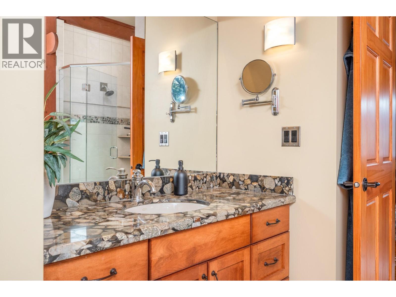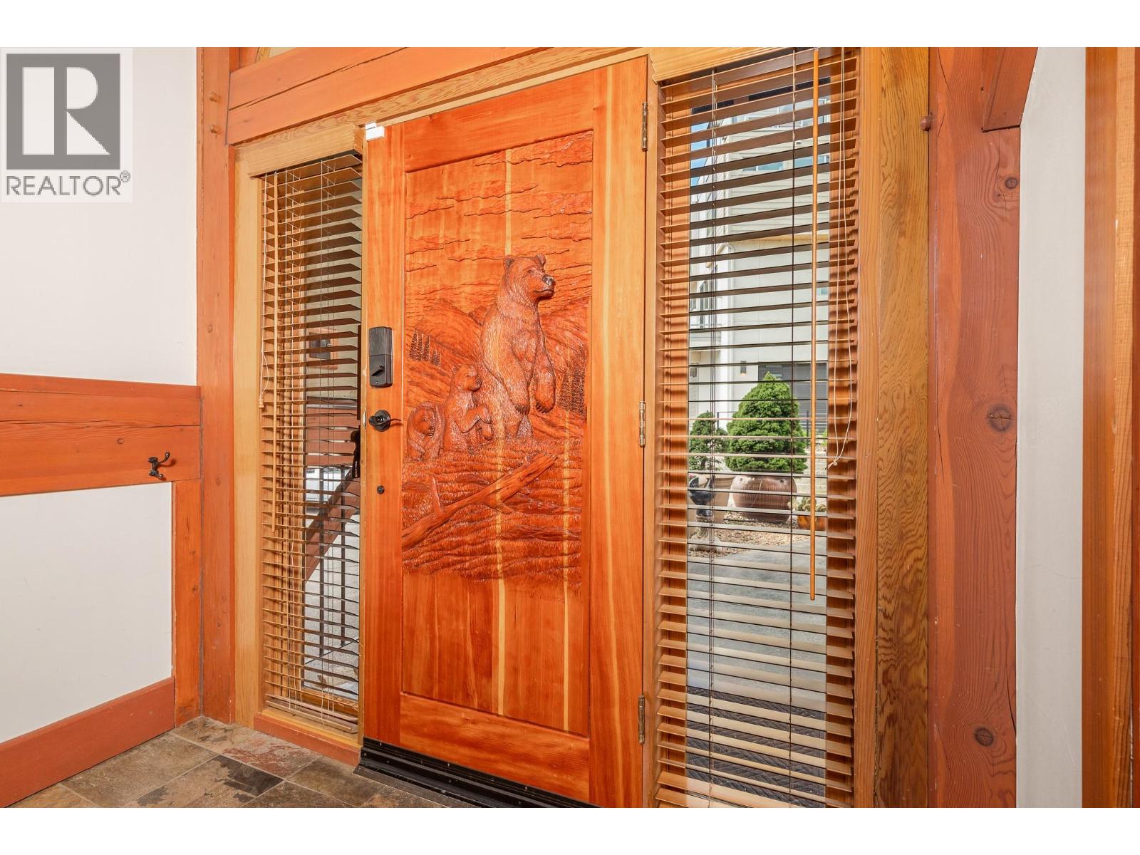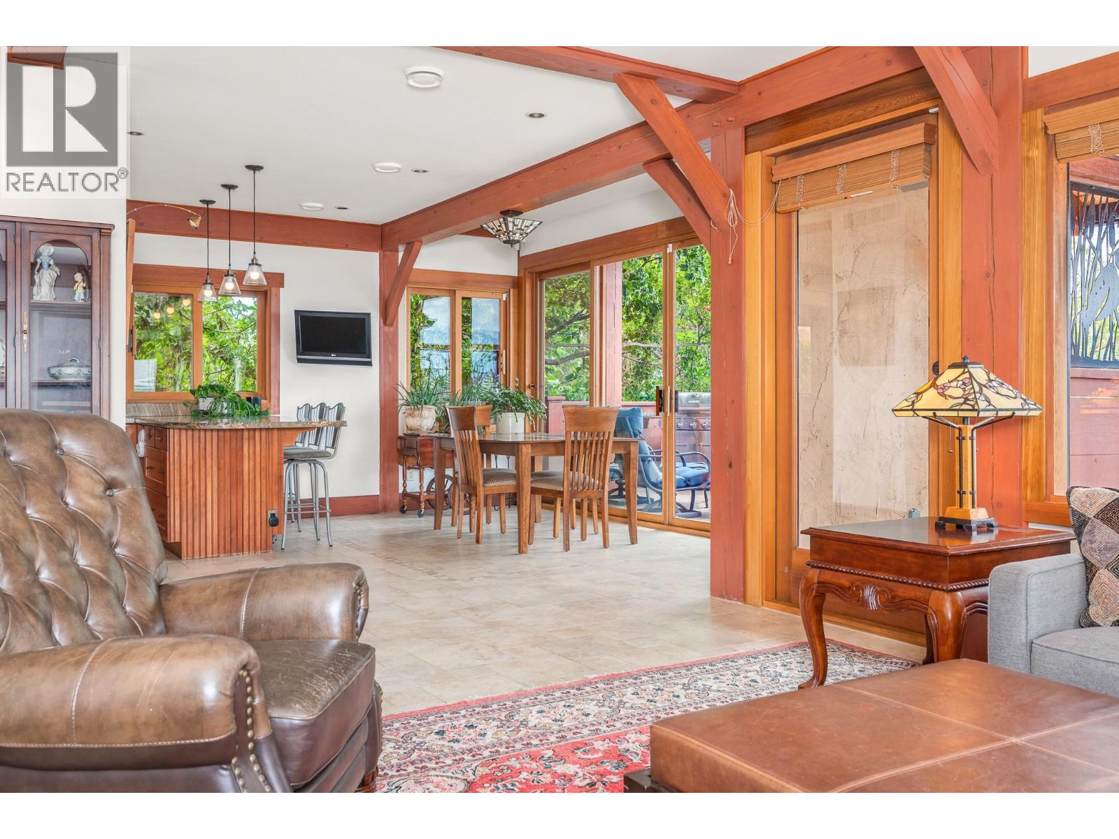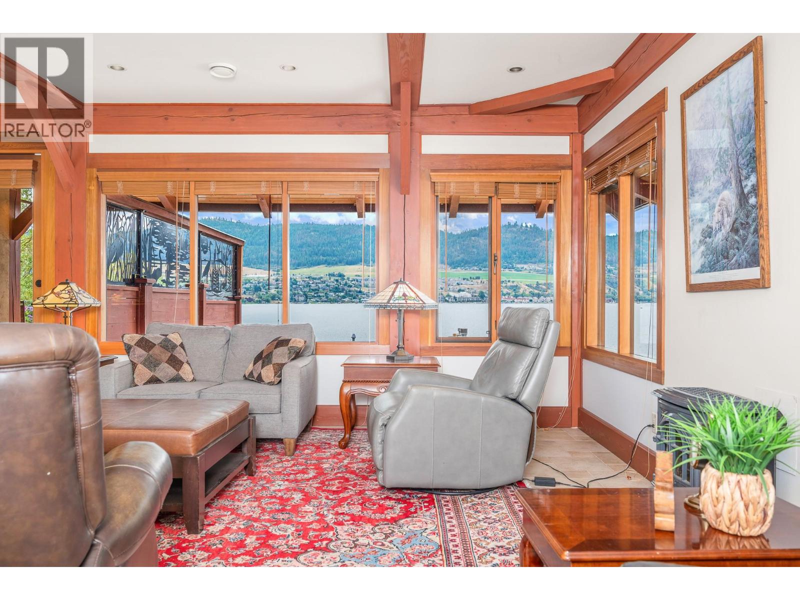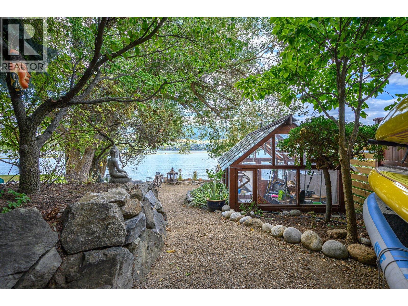Experience Okanagan lakeside living in this exquisite custom timber frame chalet with European-inspired craftsmanship located on bare land strata. Striking exposed beams, intricate metal art accents, and 2 carved wood doors create a warm, timeless atmosphere. A private walkway leads to a newly constructed large, shared dock with boat moorage, perfect for summer adventures, water sports, or sunset cruises with friends and family. Inside, hardwood and tile floors flow throughout for durability and style. The chef’s kitchen is a showpiece with stainless steel counters, a granite peninsula, and a powered walk-in pantry that keeps appliances neatly tucked away. Laundry is conveniently located off the kitchen with extra storage. The top-floor primary suite is a true sanctuary with panoramic lake views, private deck, walk-in closet, spa-inspired ensuite, and enough room for a generous sitting area. The second bedroom below offers spacious accommodations and its own private ensuite ideal for family or guests. The walk-out lower-level features a private entry; excellent potential for a self-contained studio suite or an additional bedroom. Outside, ample parking for up to 6 vehicles via garage, two carports, and driveway parking. Three storage sheds, and abundant space for lake toys makes lakeside living effortless. 10 mins to city center and steps to Kin Beach, this is a rare property combining artisan detail, exceptional design, and the true Okanagan lifestyle in a coveted location. (id:2469)