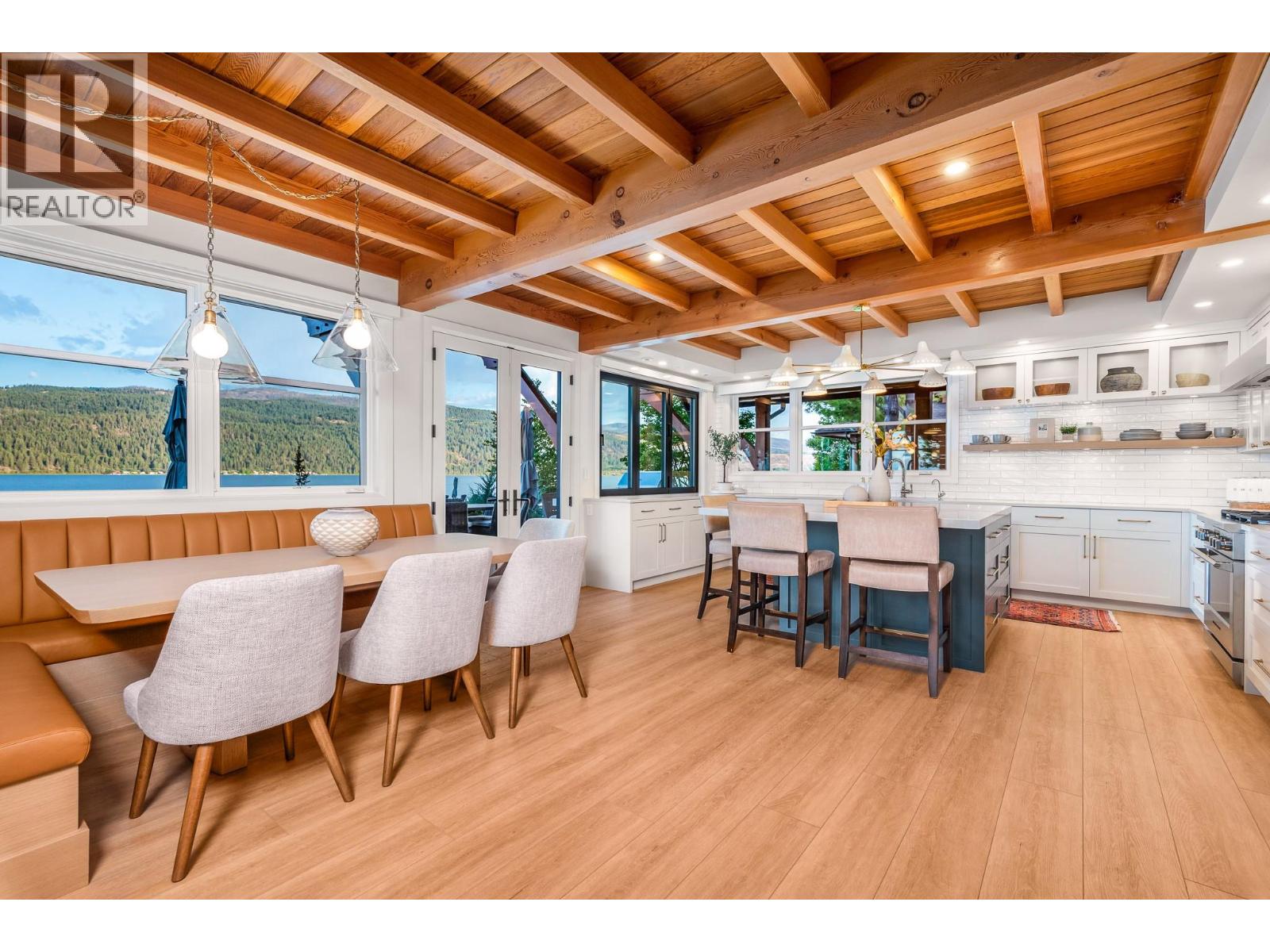 The ultimate “Hampton Beach” waterfront Cottage on Okanagan Lake! Step into the ambiance of this waterfront home, masterfully designed for elegance and comfort. Completely rebuilt in 2023, every inch of this residence is crafted for functionality and lake life enjoyment. The great room features beamed wooden ceilings, luxury vinyl flooring, quartz countertops, in-floor heating, and central cooling. The space is filled with fabulous built-ins, including a wet bar which includes a wine fridge, beverage drawer and ice maker. With 3.5 stunning bathrooms and a primary suite boasting automated blinds and a ceiling-hidden TV, luxury is woven into every detail. The home includes three additional bedrooms, one of which features custom bunk beds. The kitchen, equipped with a massive island and Nano windows that open to the patio, seamlessly connects to the many outdoor living areas, including a sunroom, fire bowl area, and summer kitchen. A new custom dock with expanded sitting areas completes this exquisite property. Nestled in an exclusive gated waterfront neighbourhood, shared by only 15 other homeowners, this residence offers privacy and luxury on the water's edge. (id:2469)