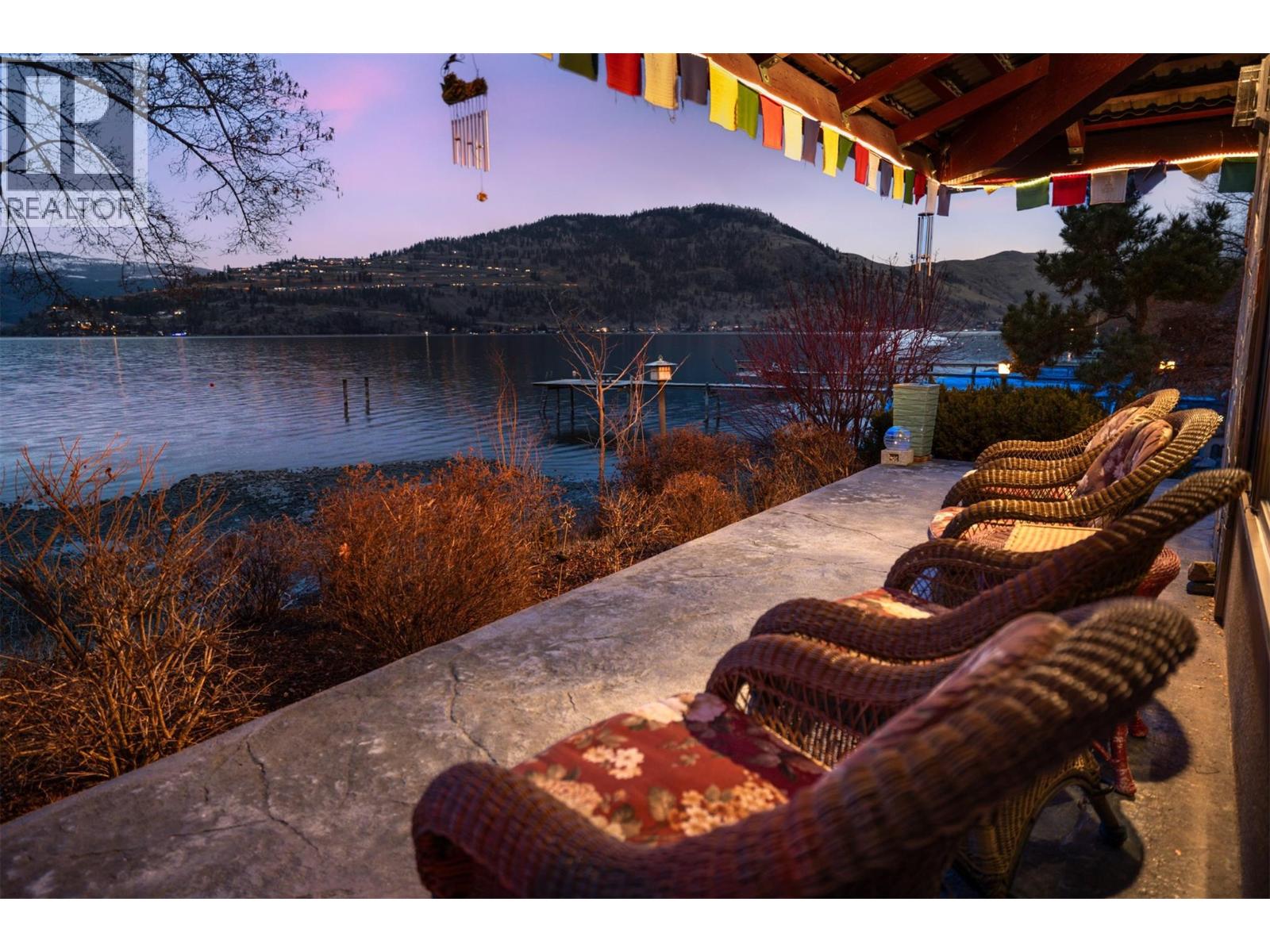 A rare opportunity to own a custom gated waterfront estate on 0.70 acres of Okanagan Lake shoreline. Offering over 3,900 sq. ft. of living space and 270 ft lake frontage. This exceptional 4-bed, 4-bath residence is designed for seamless indoor-outdoor living, breathtaking views, and absolute privacy. Inspired by Feng Shui design principles, balance and harmony flow through every space. As you enter the home, expansive lake views draw you into the main level. The living room, formal dining room, family room, and primary suite are all perfectly positioned to maximize the stunning waterfront setting. High18-ft ceilings with skylights flood the space with natural light, while a gas fireplace adds warmth and sophistication. The gourmet kitchen is a chef’s dream, boasting custom Brazilian granite, premium stainless-steel appliances—including a Viking commercial-grade range, dual KitchenAid wall ovens, and an Ultraline gas cooktop—and a spacious breakfast nook leading to a sunlit solarium. An outdoor kitchen with a sink, BBQ, and gas wok cooktop makes al fresco dining effortless. The main-level primary suite is a true retreat, featuring a luxurious 6-piece ensuite and a walk-in closet. Upstairs, 2 additional beds, 2 baths, and a flexible space offer versatility for a home office or guest quarters. This ultra-private estate is framed by 100 mature cedars. Private dock at the water’s edge for taking advantage of lakefront living. (id:2469)