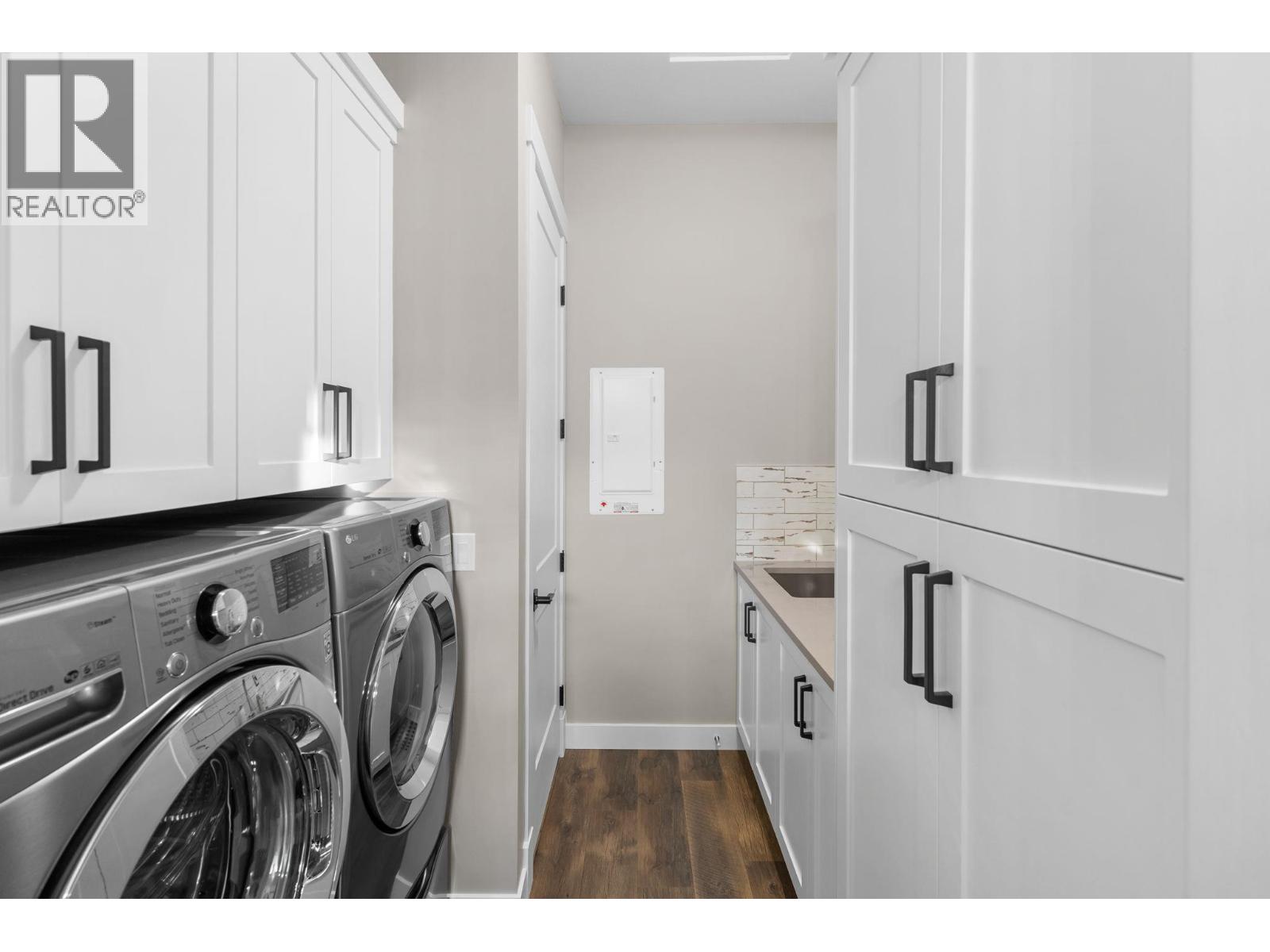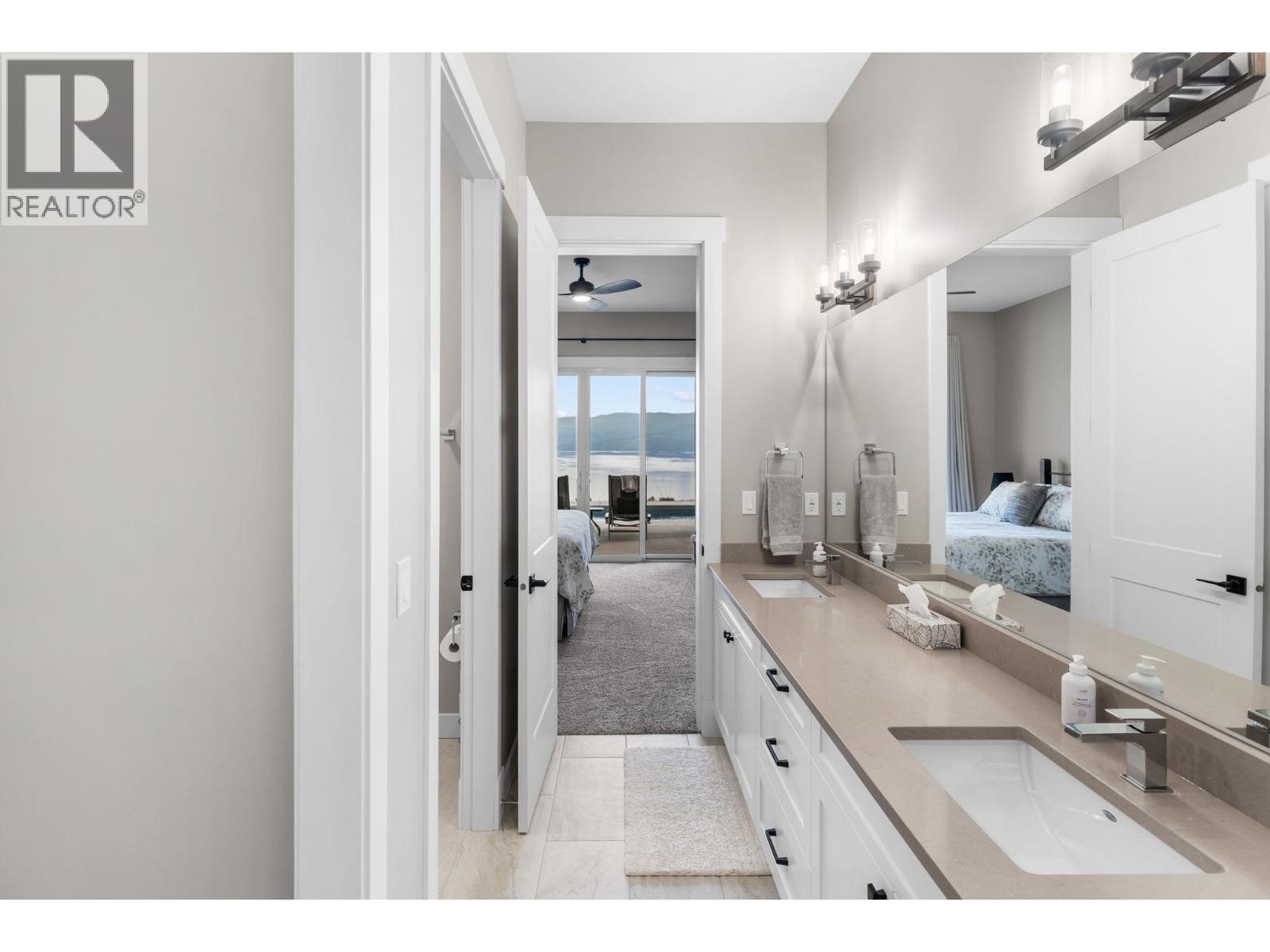 Welcome to this exquisite 2.7-acre estate nestled above Okanagan Lake in one of Vernon’s most sought-after communities. Set behind a solar-powered gate, this private, multi-family–zoned lot blends luxury, comfort, lifestyle, and versatility. Inside, the bright and airy home offers vaulted ceilings, a soaring fireplace, and floor-to-ceiling windows framing 270 degree lake views. The main floor features a gourmet kitchen with Miele appliances, a built-in espresso station, plus a prep kitchen, all flowing seamlessly to the living and dining areas. Step onto the 800+ square foot covered terrace, boasting topless glass railings and power shades for seamless indoor-outdoor living. The main level includes a powder room, office, and a primary suite with a double shower, soaker tub, and laundry. Downstairs, the daylight walkout basement hosts two more lakeview bedrooms with ensuites, a theater with 4K Dolby Atmos, a wet bar, wine cellar, and a games room. All enjoyed with in-floor heating throughout this level. Step outside to the private oasis with a saltwater pool (deck jets, auto cover, LED lighting), Michael Phelps spa, outdoor kitchen, TV, shower, and bathroom. This low maintenance estate with city utilities offers a three bay heated garage (polyaspartic floors), rough-ins for solar, EV charging, and an elevator. Room for a second residence, carriage house, shop, and/or pickleball court. Owners enjoy exclusive access to a private dock, beach, and sports courts—Adventure Bay living at its finest (id:2469)