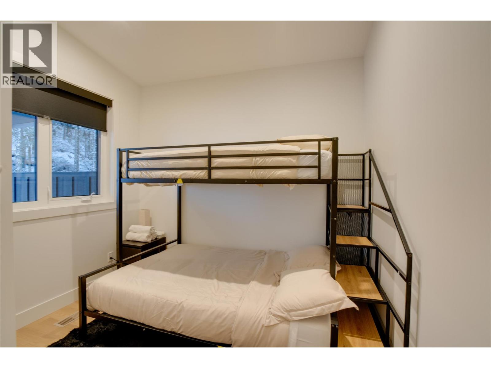 This brand-new, custom-built modern 4 bedroom, 4 bathroom half duplex offers breathtaking views of the lakes and valley, along with plenty of space to comfortably accommodate friends and family. Stunning main living area features vaulted ceilings, modern cement walls, and expansive windows that create an inviting space to relax and take in the incredible views after a day on the mountain. Unwind by the fireplace with a good book or prepare a gourmet meal in the upgraded kitchen. Just off the living area/dining room are three bedrooms and access to the back deck, where you can soak in your private hot tub and enjoy the scenery. The lower level boasts an open-concept TV lounge with semi-private sleeping quarters and fully private sleeping quarters, a full bathroom and laundry. This is a ski-in and walk-out property. Ski into the back of the home from the ski run ""Bushback"". Roughly 3 min downhill walk from the property takes you to the ski run ""Attridge Run Out"". Discover the magic of Silver Star Mountain all year round — 133 runs in the winter and vast, varied terrain for hiking and biking in the summer. 1 hour travel to Kelowna International Airport. (id:2469)
