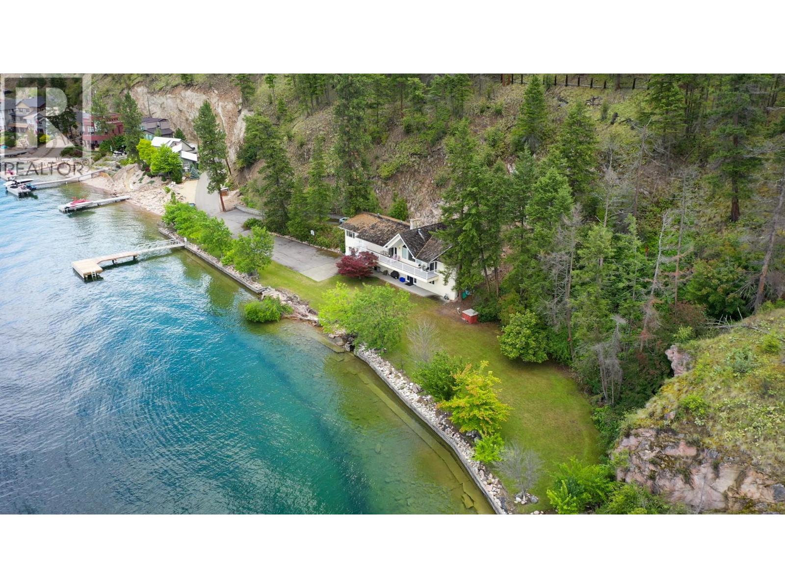 Presenting this amazing end-of-the-road 5 bed, 4 bath Lakefront Estate home located in the prestigious, gated Eastside Estates community. If privacy and location are what you are looking for, the property boasts 399 feet of pristine Okanagan lake frontage on 10.625 acres. Surrounded by Ponderosa Pines, beaches leading to crystal clear water, and stunning views of Terrace Mountain this property is your perfect oasis. Enjoy summer days on the newly constructed private pier and end the day watching the sunset from the covered balcony. The upper floor consists of three bedrooms and three baths while the large basement is fully finished including two bedrooms, a full bath, recreation room, laundry, flex room off of the garage, and a mechanical room. The kitchen features teak cabinetry and mainly marble flooring throughout. Located along picturesque Eastside Rd about 20 mins from downtown Vernon but very close to Ellison Park, Wineries, Predator Ridge and Sparkling Hill Resort. NO Speculation Tax. (id:2469)