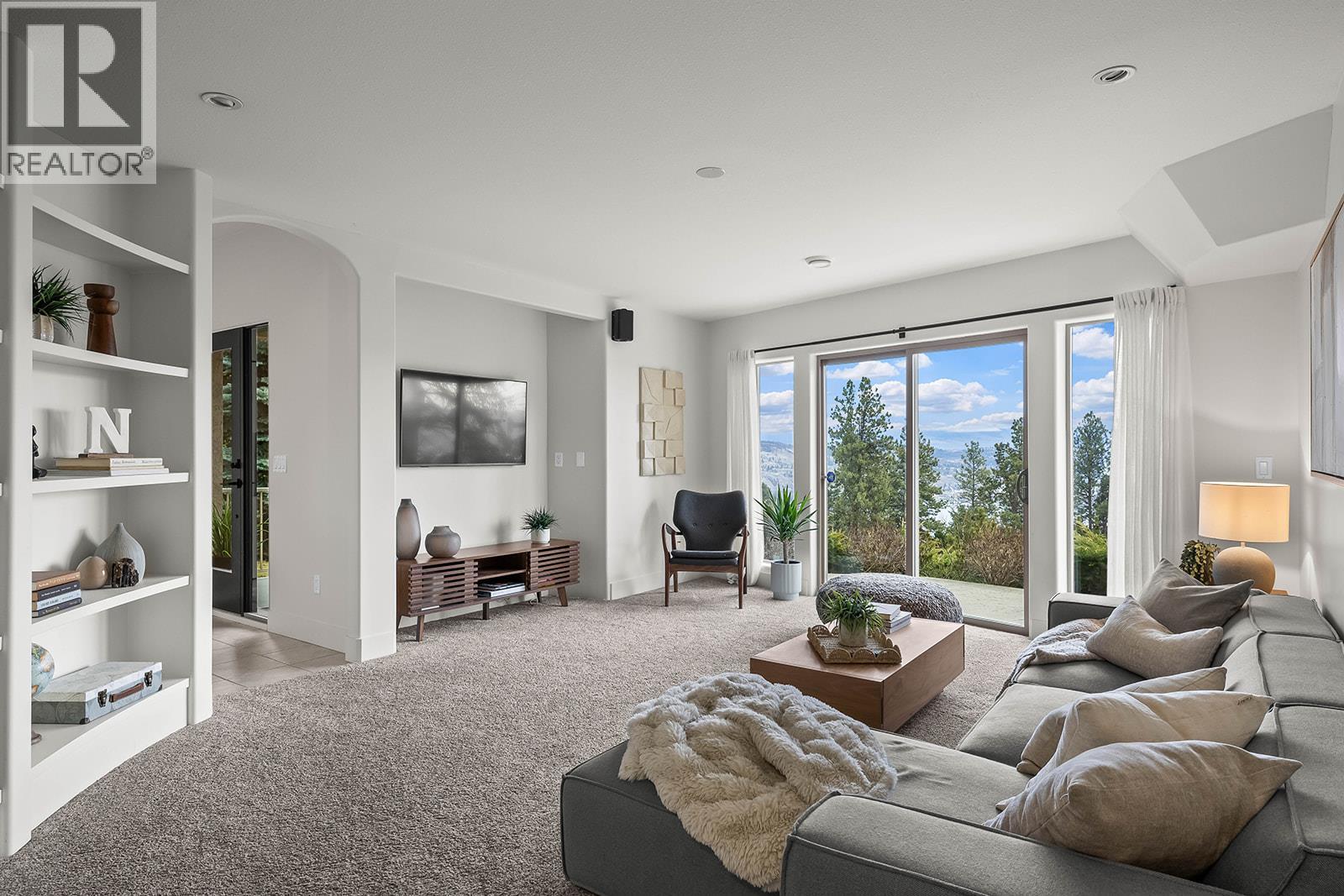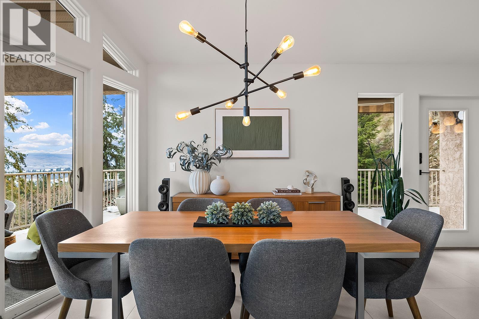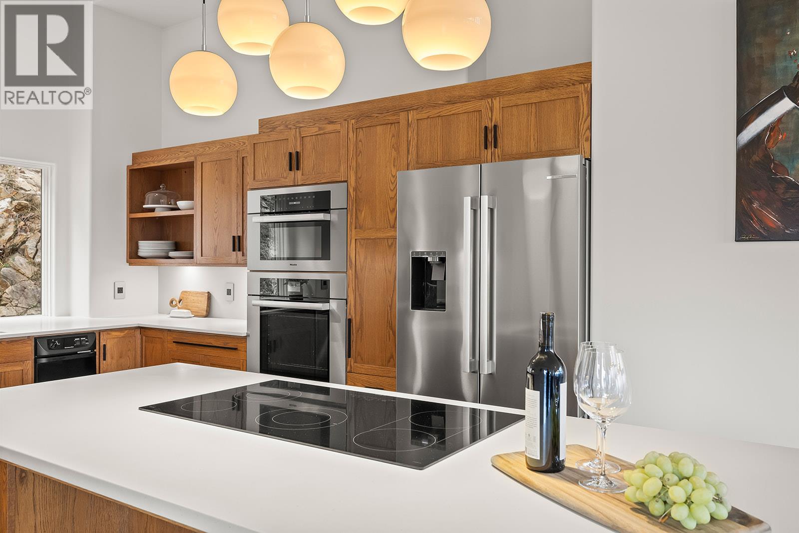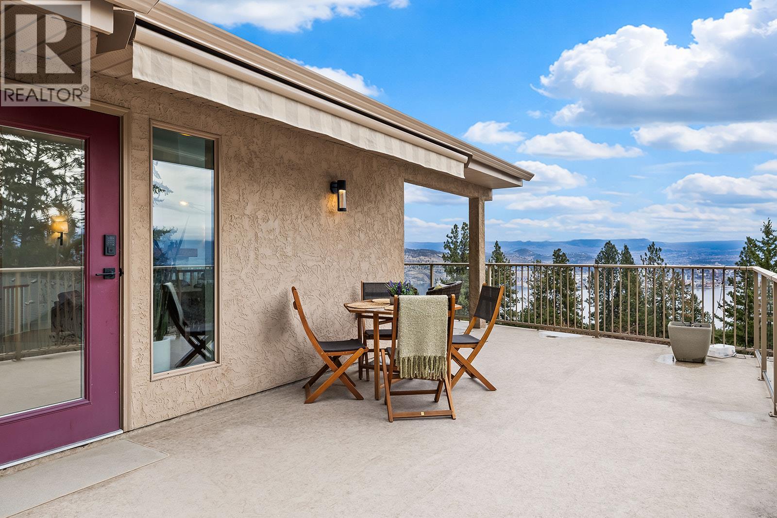 West Coast Contemporary with Panoramic Okanagan Views. Architecturally designed to capture sweeping views of Okanagan Lake, the city lights, and Big White. This beautifully renovated West Coast Contemporary home offers privacy, functionality, and striking design on a .51 acre lot. A private driveway leads to your own personal oasis. This 3 bedroom, 2.5 bath residence features soaring two storey windows and an 18 foot vaulted ceiling in the living room, 11 foot ceilings in the kitchen and bedrooms, flooding the home with natural light and showcasing breathtaking vistas throughout. The main level includes a spacious living area with a gas fireplace, a gorgeous eat-in kitchen with high-end Miele and Bosch appliances, a primary bedroom, an additional bedroom, a laundry shoot in the bathroom, and elegant finishes throughout. The ground level offers a large foyer, laundry room, family room with built-in shelving, home gym, half bathroom, and an additional bedroom ideal for guests or family living. Outdoor living features expansive deck space and multiple lake views. A rare quadruple-car garage plus ample additional parking provides space for vehicles and toys, complemented by high-end air and water purification systems. Over 30 km of hiking and biking trails nearby, boutique wineries minutes away, and Downtown Kelowna just 10 minutes away, this home perfectly blends West Coast style with Okanagan living. This beautifully updated home is a must-see! (id:2469)