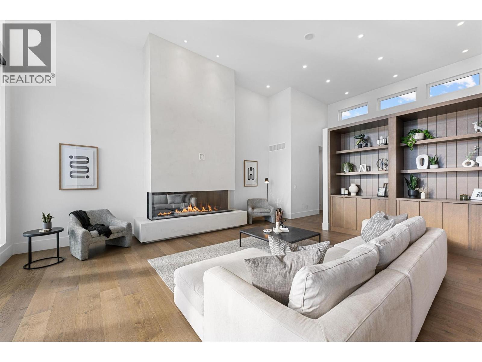 Perched in Vineyard Estates with sweeping views of Lake Okanagan and scenic Mission Hill Estate Winery, this modern home blends contemporary design with exceptional craftsmanship. Minutes to beaches, world-class wineries, parks, and the hiking and biking trails of Mount Boucherie, it offers an ideal Okanagan lifestyle. The main level features soaring ceilings, wide-plank hardwood, and floor-to-ceiling windows framing panoramic vistas. A floor-to-ceiling feature fireplace anchors the living area alongside custom built-ins and power blinds. The chef’s kitchen impresses with Caesarstone surfaces, a dramatic backsplash, Wolf + JennAir appliances, a large island, and a fully equipped butler’s pantry. Walkout access to a covered view deck with speakers, wood ceiling inlay, and BBQ hookup. The lakeview primary is a serene retreat with a walk-in closet and a stunning 5-piece ensuite with heated floors, floor-to-ceiling tile, and a dramatic glass wall. A second bedroom with ensuite and an office complete the main level. The lower level is designed for connection with two additional bedrooms (1 has ensuite), a luxe 4-piece bath and a spacious recr room with custom wet bar, wine display, and nano doors opening to a pool deck. Outside, enjoy a sunken hot tub, concrete 14x28 saltwater pool (power-cover ready), and unobstructed glass-railed views. With upgraded lighting, 8-ft doors, abundant storage, and a 3-car garage, this residence delivers refined Okanagan living. (id:2469)