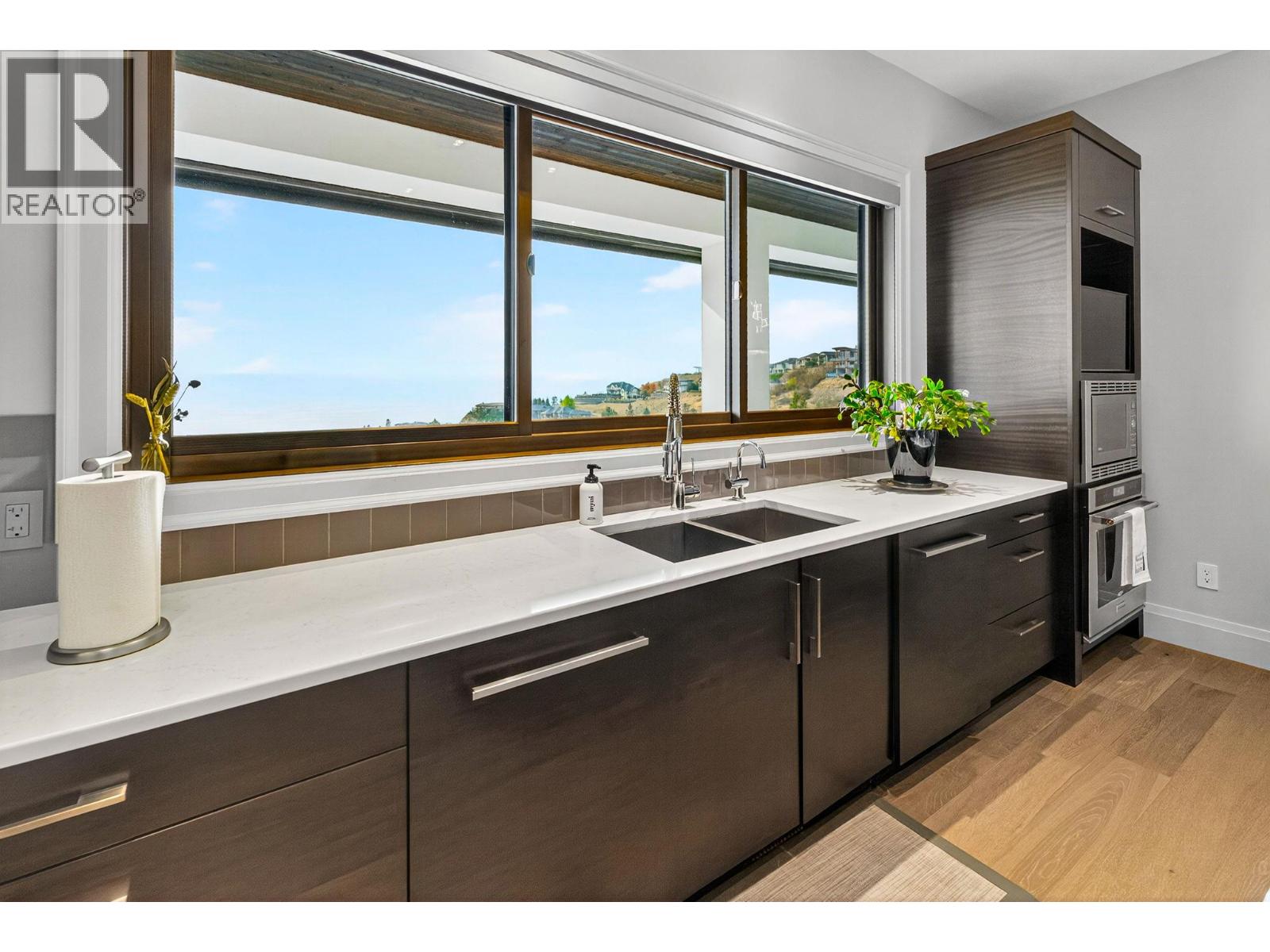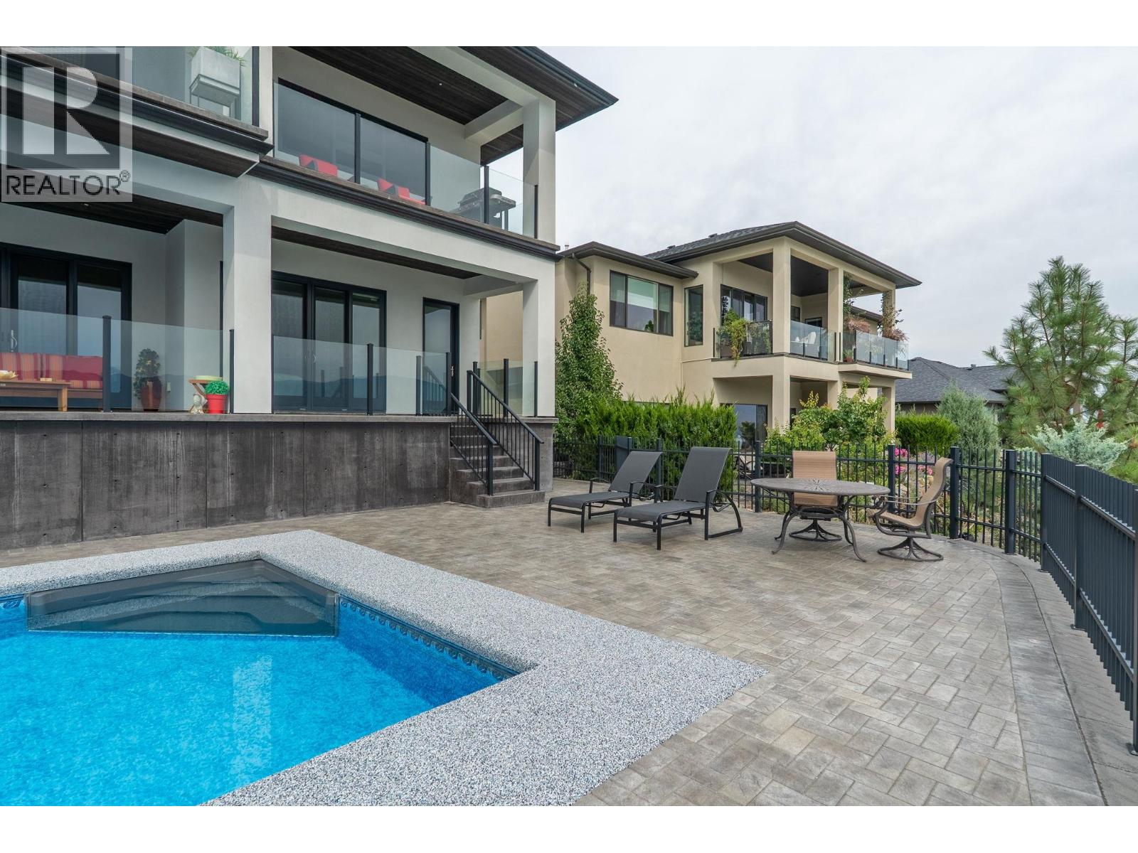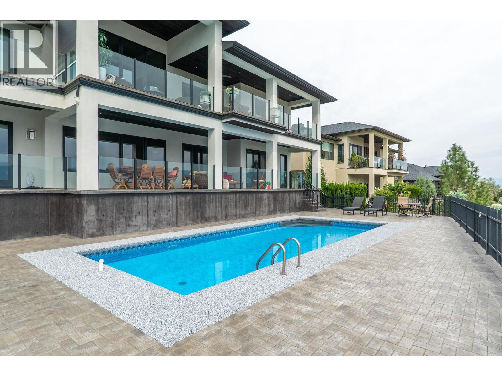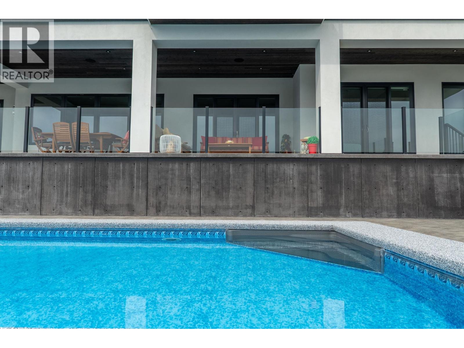 Welcome to an unparalleled luxury residence where custom design meets timeless elegance. This 5,172 sq ft architectural gem is a testament to superior craftsmanship, offering captivating lake, vineyard, and mountain views—a backdrop as exquisite as the home itself. Step inside to discover an expansive primary bedroom, highlighting a luxurious ensuite with steam shower, soaker tub, heated floors and interim lighting. The walk-in closet, complete with its own washer and dryer, adds convenience to luxury living. The modern kitchen boasts top-of-the-line appliances, an instant hot water tap, and a large quartz island, complete with a prep sink—perfect for gatherings with family and friends. A welcome addition is a Butler’s pantry complete with fridge and stove. Adjacent to the dining room, there’s a beverage centre with wine fridge, sink, and built-in shelving/storage with elegant sliding wood doors. Throughout the home, you’ll find soaring ceilings, wide plank flooring, modern lighting along with stainless steel/glass railings. The executive office can overlook the garage if need be, catering to car enthusiasts. It highlights a triple car garage with an epoxy floor, but for discretion and practicality the windows have customized wooden louvered blinds. The walk-out basement features three additional bedrooms, including a Jack and Jill bathroom—ideal for teenagers seeking their own space. Unwind in the saltwater heated pool or relax on the large deck and patio, overlooking a maintenance-free, fully fenced yard. This immaculate home features a backup generator, electric blinds, built-in audio system, kids’ play loft, theatre room, a second laundry room in the basement, and newly sealed driveway, deck and patio. Plus Rubroc accent added around the pool deck, an artificial front lawn, and a “no-grass” backyard! This Lakeview Heights masterpiece truly looks and feels brand new—crafted for those who appreciate luxury, elegance, and flawless attention to detail. (id:2469)