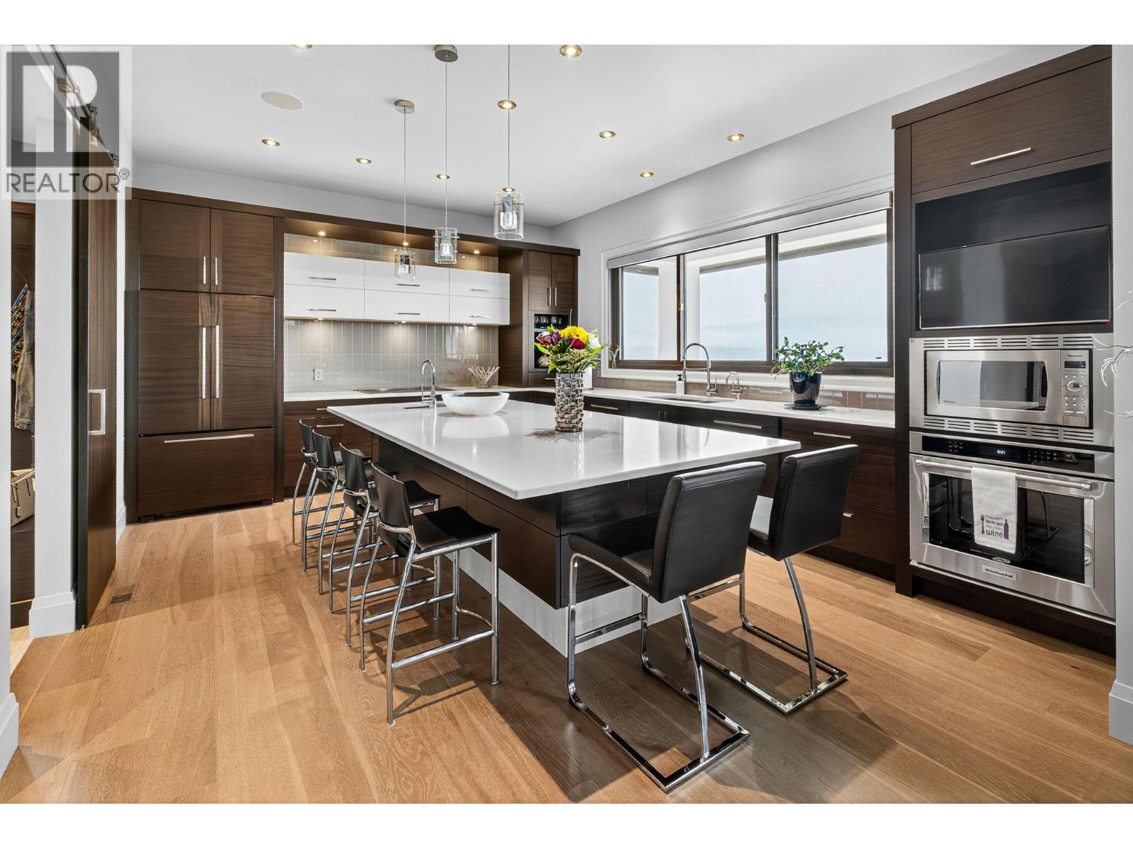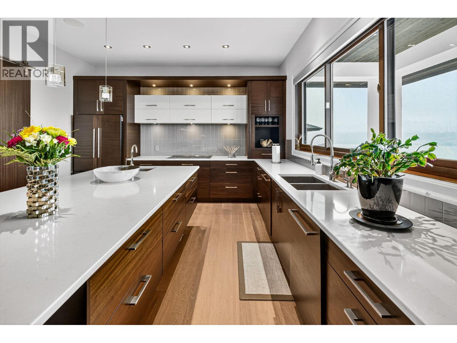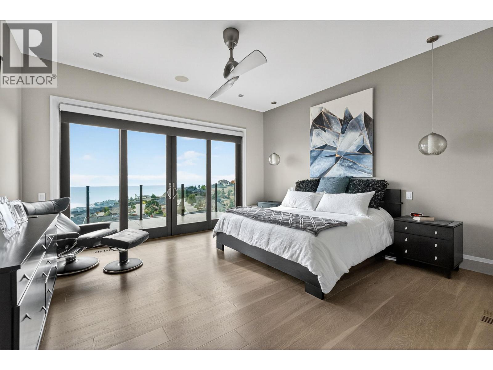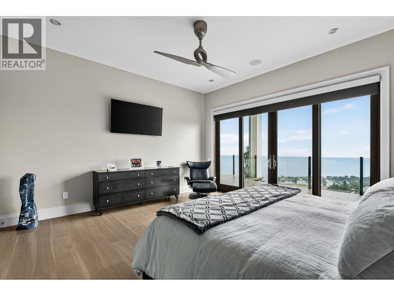Welcome to an unparalleled luxury residence where custom design meets timeless elegance. This 5,172 sq ft architectural gem is a testament to superior craftsmanship, offering captivating lake, vineyard, and mountain views—a backdrop as exquisite as the home itself. Step inside to discover an expansive primary bedroom, highlighting a luxurious ensuite with steam shower, soaker tub, heated floors and interim lighting. The walk-in closet, complete with its own washer and dryer, adds convenience to luxury living. The modern kitchen boasts top-of-the-line appliances, an instant hot water tap, and a large quartz island, complete with a prep sink—perfect for gatherings with family and friends. A welcome addition is a Butler’s pantry complete with fridge and stove. Adjacent to the dining room, there’s a beverage centre with wine fridge, sink, and built-in shelving/storage with elegant sliding wood doors. Throughout the home, you’ll find soaring ceilings, wide plank flooring, modern lighting along with stainless steel/glass railings. The executive office can overlook the garage if need be, catering to car enthusiasts. It highlights a triple car garage with an epoxy floor, but for discretion and practicality the windows have customized wooden louvered blinds. The walk-out basement features three additional bedrooms, including a Jack and Jill bathroom—ideal for teenagers seeking their own space. Unwind in the saltwater heated pool or relax on the large deck and patio, overlooking a maintenance-free, fully fenced yard. This immaculate home features a backup generator, electric blinds, built-in audio system, kids’ play loft, theatre room, a second laundry room in the basement, and newly sealed driveway, deck and patio. Plus Rubroc accent added around the pool deck, an artificial front lawn, and a “no-grass” backyard! This Lakeview Heights masterpiece truly looks and feels brand new—crafted for those who appreciate luxury, elegance, and flawless attention to detail. (id:2469)