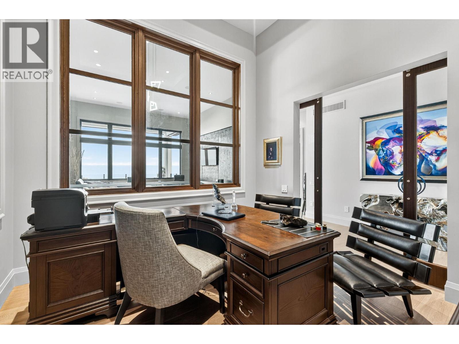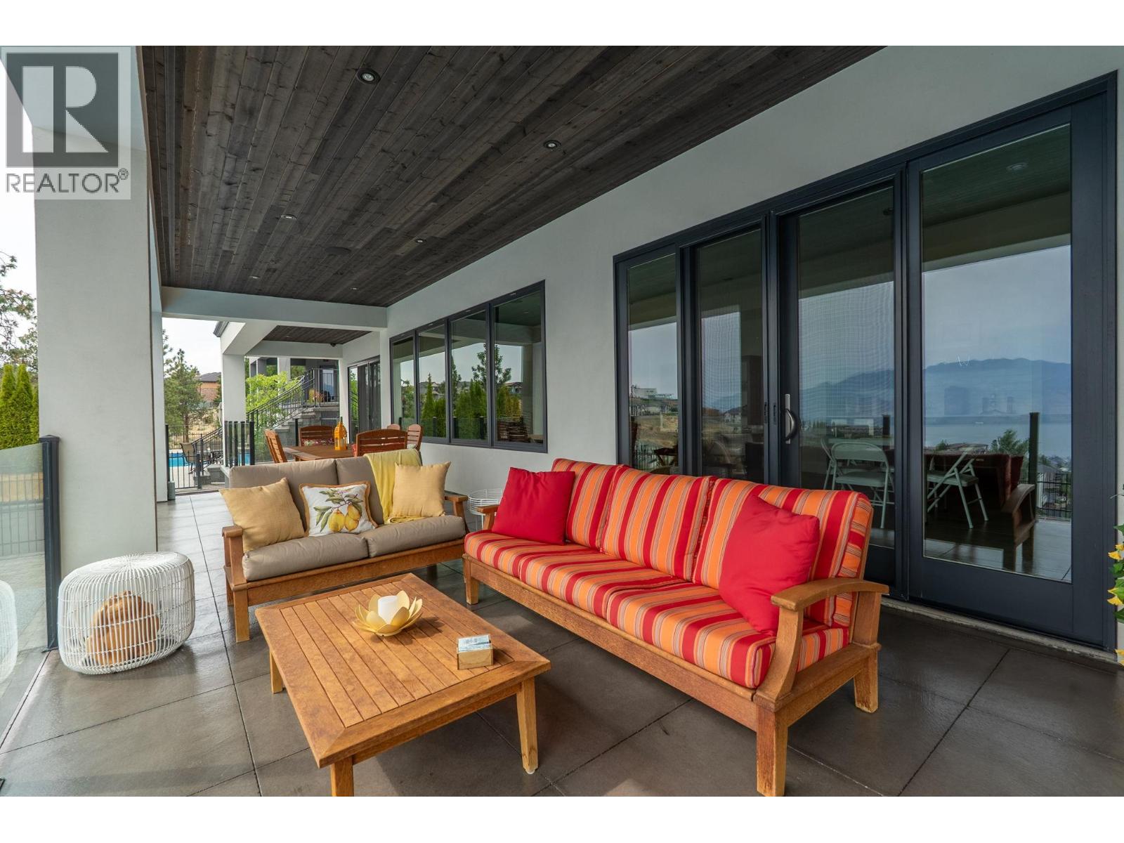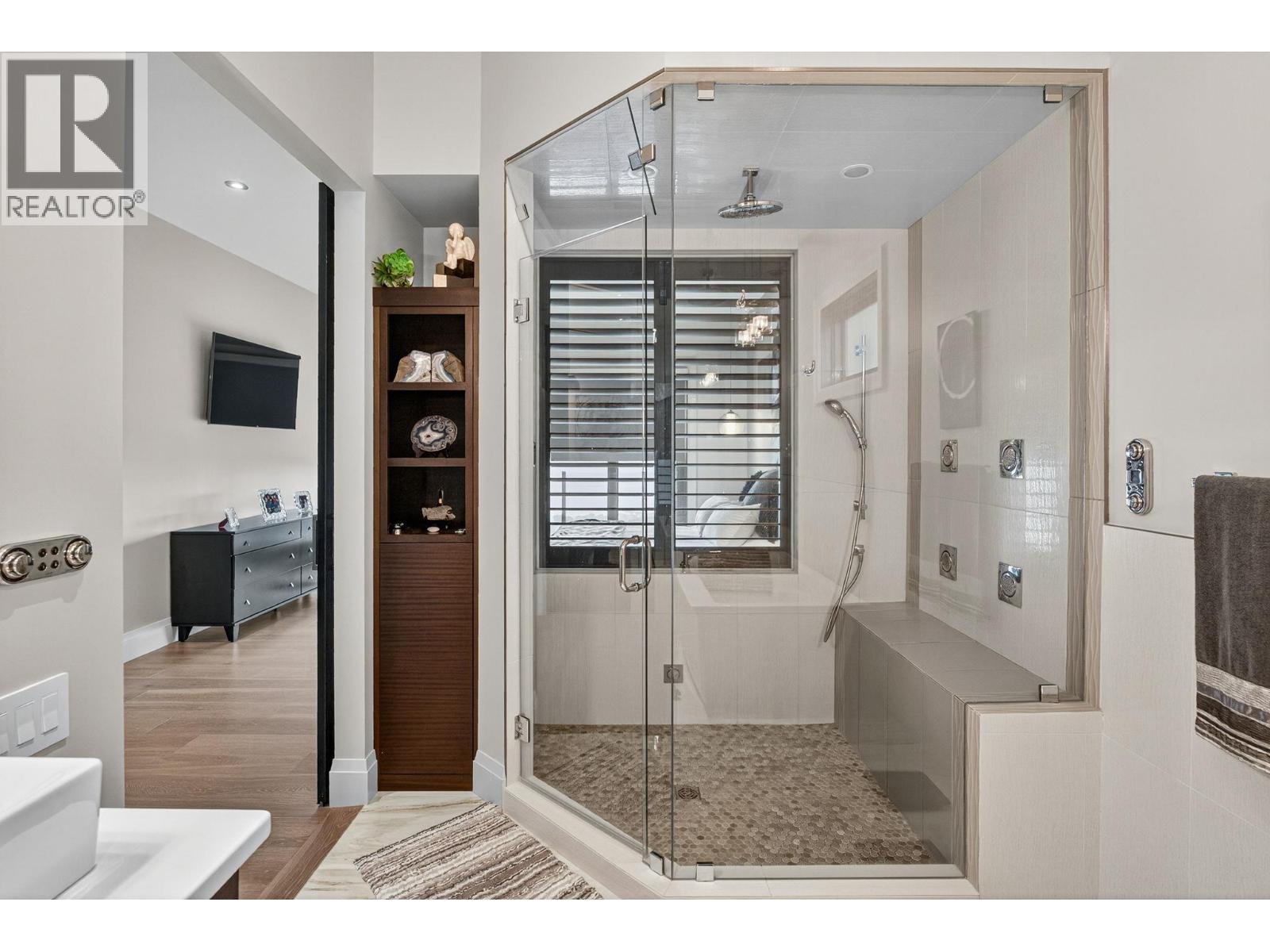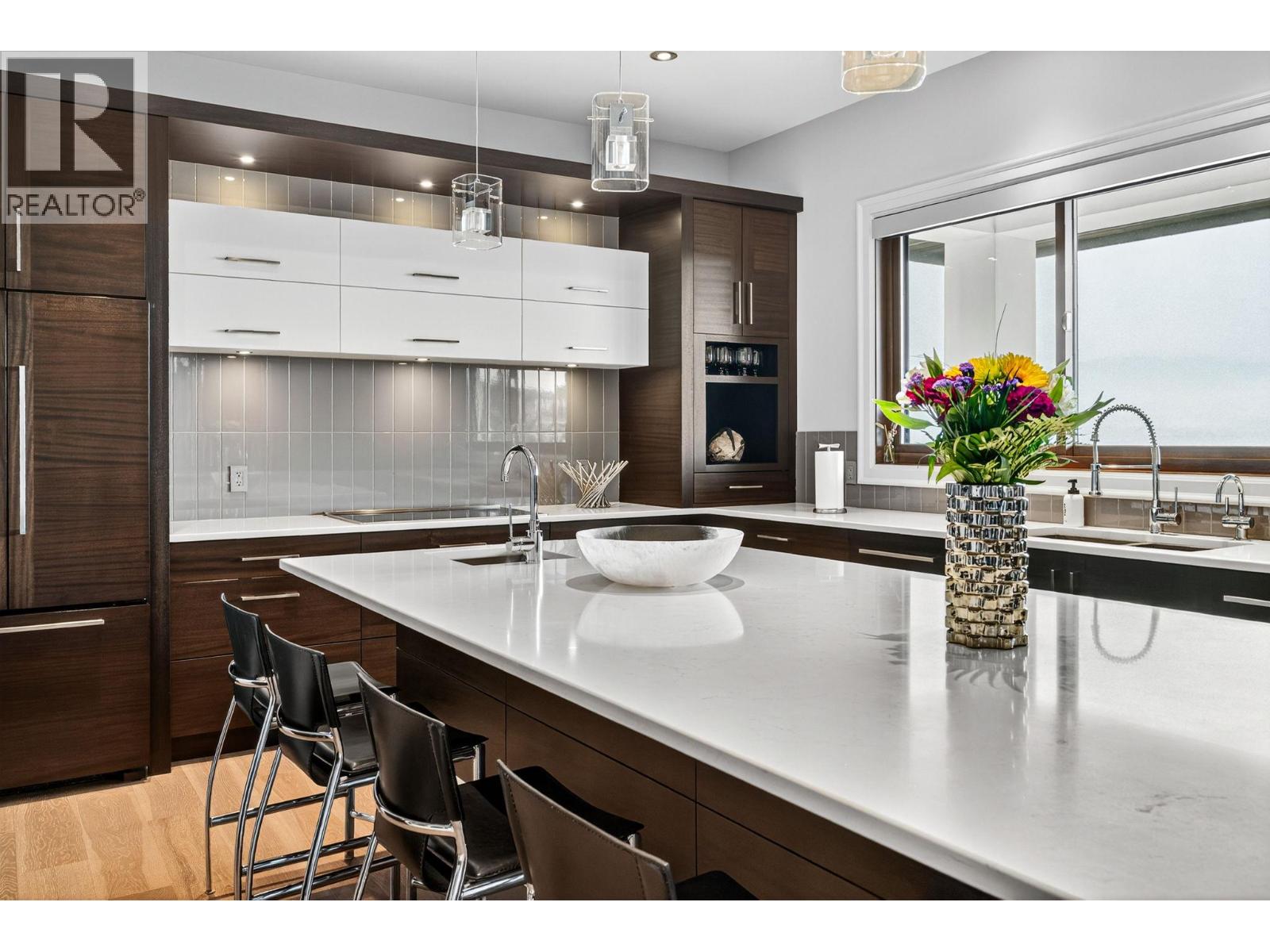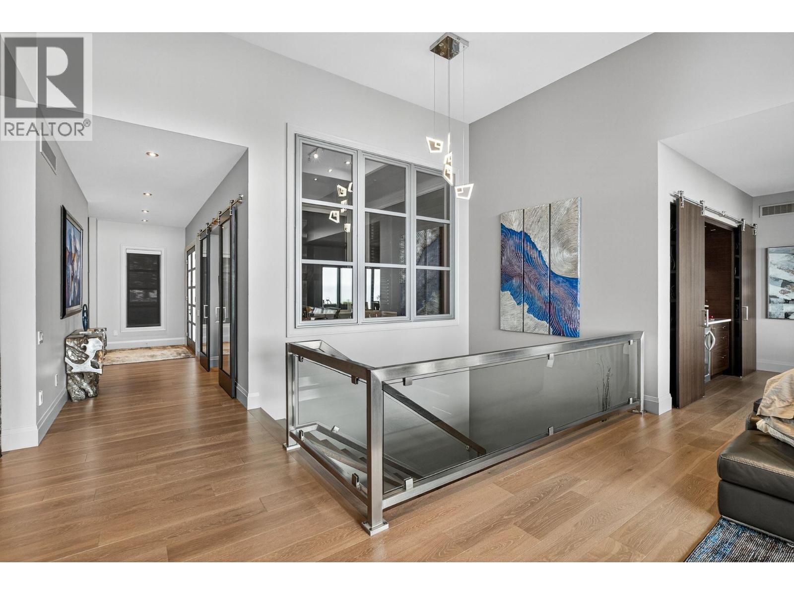 Welcome to an unparalleled luxury residence where custom design meets timeless elegance. This 5,172 sq ft architectural gem is a testament to superior craftsmanship, offering captivating lake, vineyard, and mountain views—a backdrop as exquisite as the home itself. Step inside to discover an expansive primary bedroom, highlighting a luxurious ensuite with steam shower, soaker tub, heated floors and interim lighting. The walk-in closet, complete with its own washer and dryer, adds convenience to luxury living. The modern kitchen boasts top-of-the-line appliances, an instant hot water tap, and a large quartz island, complete with a prep sink—perfect for gatherings with family and friends. A welcome addition is a Butler’s pantry complete with fridge and stove. Adjacent to the dining room, there’s a beverage centre with wine fridge, sink, and built-in shelving/storage with elegant sliding wood doors. Throughout the home, you’ll find soaring ceilings, wide plank flooring, modern lighting along with stainless steel/glass railings. The executive office can overlook the garage if need be, catering to car enthusiasts. It highlights a triple car garage with an epoxy floor, but for discretion and practicality the windows have customized wooden louvered blinds. The walk-out basement features three additional bedrooms, including a Jack and Jill bathroom—ideal for teenagers seeking their own space. Unwind in the saltwater heated pool or relax on the large deck and patio, overlooking a maintenance-free, fully fenced yard. This immaculate home features a backup generator, electric blinds, built-in audio system, kids’ play loft, theatre room, a second laundry room in the basement, and newly sealed driveway, deck and patio. Plus Rubroc accent added around the pool deck, an artificial front lawn, and a “no-grass” backyard! This Lakeview Heights masterpiece truly looks and feels brand new—crafted for those who appreciate luxury, elegance, and flawless attention to detail. (id:2469)