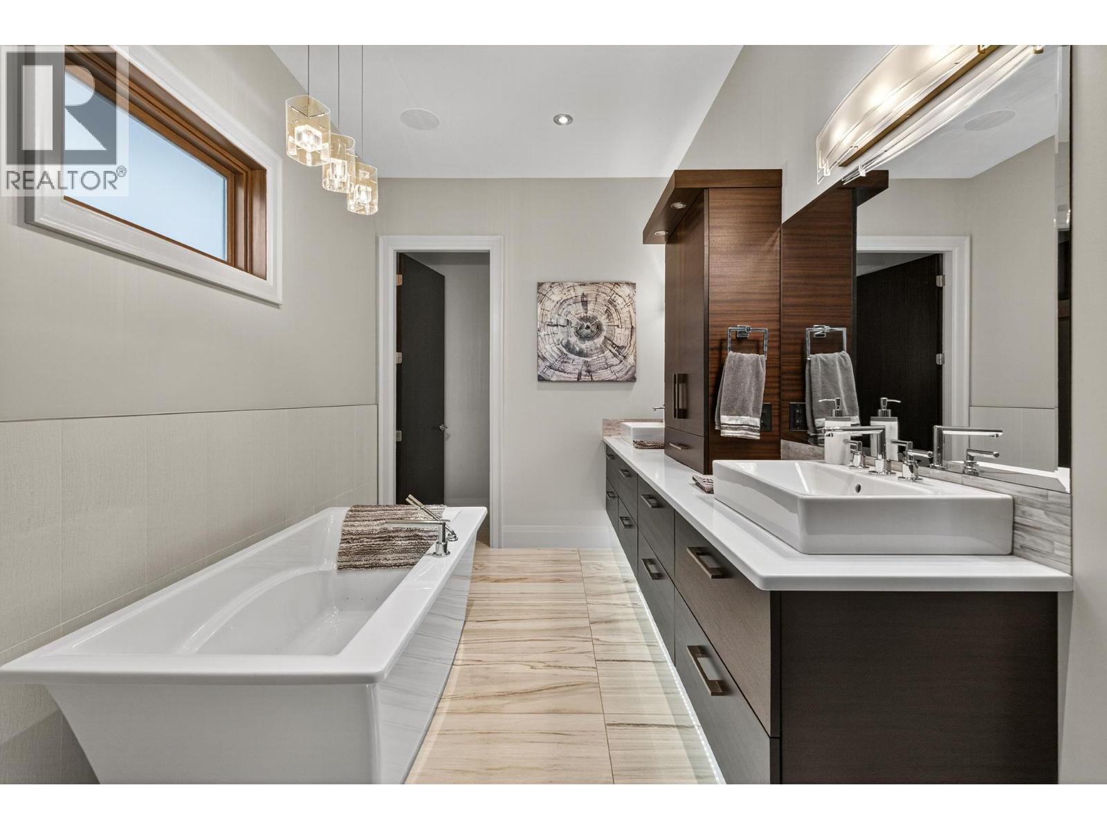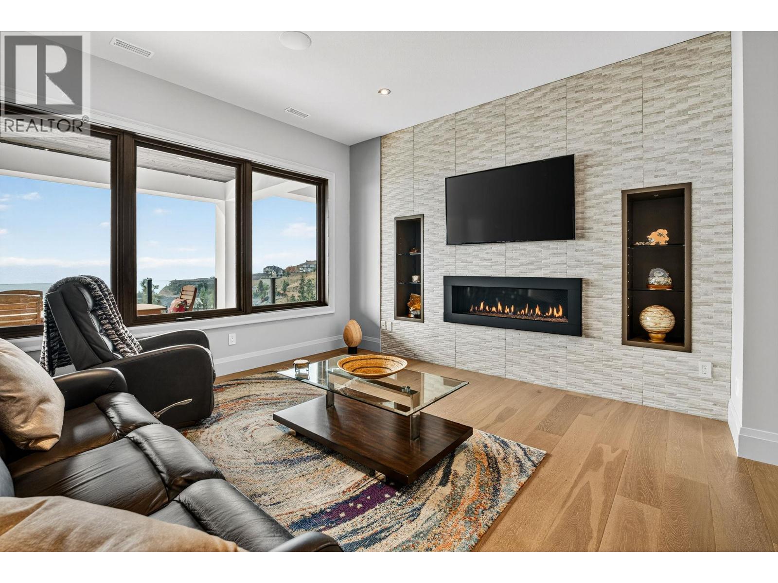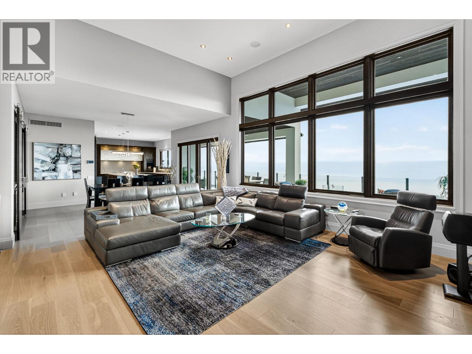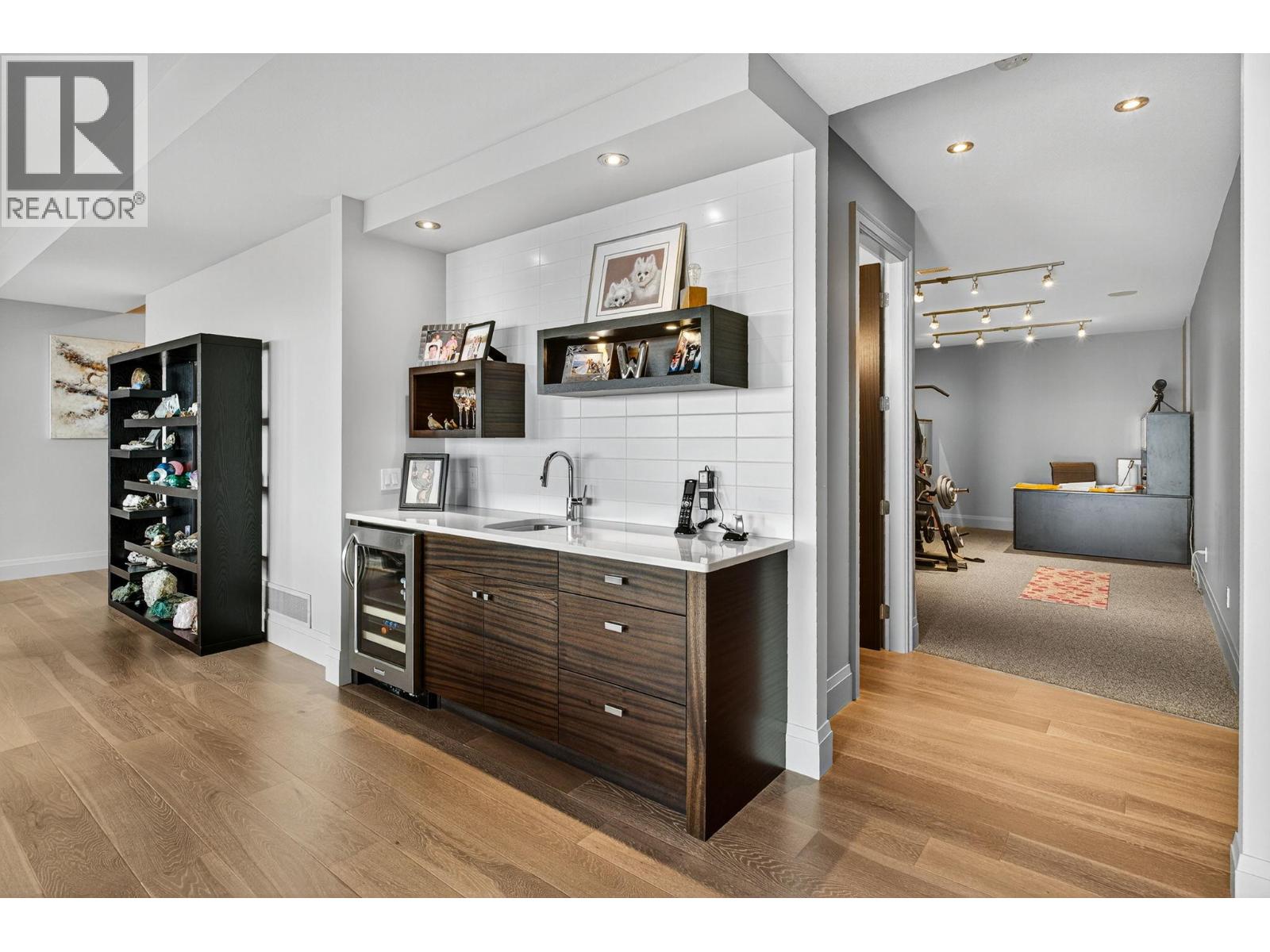 Welcome to an unparalleled luxury residence where custom design meets timeless elegance. This 5,172 sq ft architectural gem is a testament to superior craftsmanship, offering captivating lake, vineyard, and mountain views—a backdrop as exquisite as the home itself. Step inside to discover an expansive primary bedroom, highlighting a luxurious ensuite with steam shower, soaker tub, heated floors and interim lighting. The walk-in closet, complete with its own washer and dryer, adds convenience to luxury living. The modern kitchen boasts top-of-the-line appliances, an instant hot water tap, and a large quartz island, complete with a prep sink—perfect for gatherings with family and friends. A welcome addition is a Butler’s pantry complete with fridge and stove. Adjacent to the dining room, there’s a beverage centre with wine fridge, sink, and built-in shelving/storage with elegant sliding wood doors. Throughout the home, you’ll find soaring ceilings, wide plank flooring, modern lighting along with stainless steel/glass railings. The executive office can overlook the garage if need be, catering to car enthusiasts. It highlights a triple car garage with an epoxy floor, but for discretion and practicality the windows have customized wooden louvered blinds. The walk-out basement features three additional bedrooms, including a Jack and Jill bathroom—ideal for teenagers seeking their own space. Unwind in the saltwater heated pool or relax on the large deck and patio, overlooking a maintenance-free, fully fenced yard. This immaculate home features a backup generator, electric blinds, built-in audio system, kids’ play loft, theatre room, a second laundry room in the basement, and newly sealed driveway, deck and patio. Plus Rubroc accent added around the pool deck, an artificial front lawn, and a “no-grass” backyard! This Lakeview Heights masterpiece truly looks and feels brand new—crafted for those who appreciate luxury, elegance, and flawless attention to detail. (id:2469)