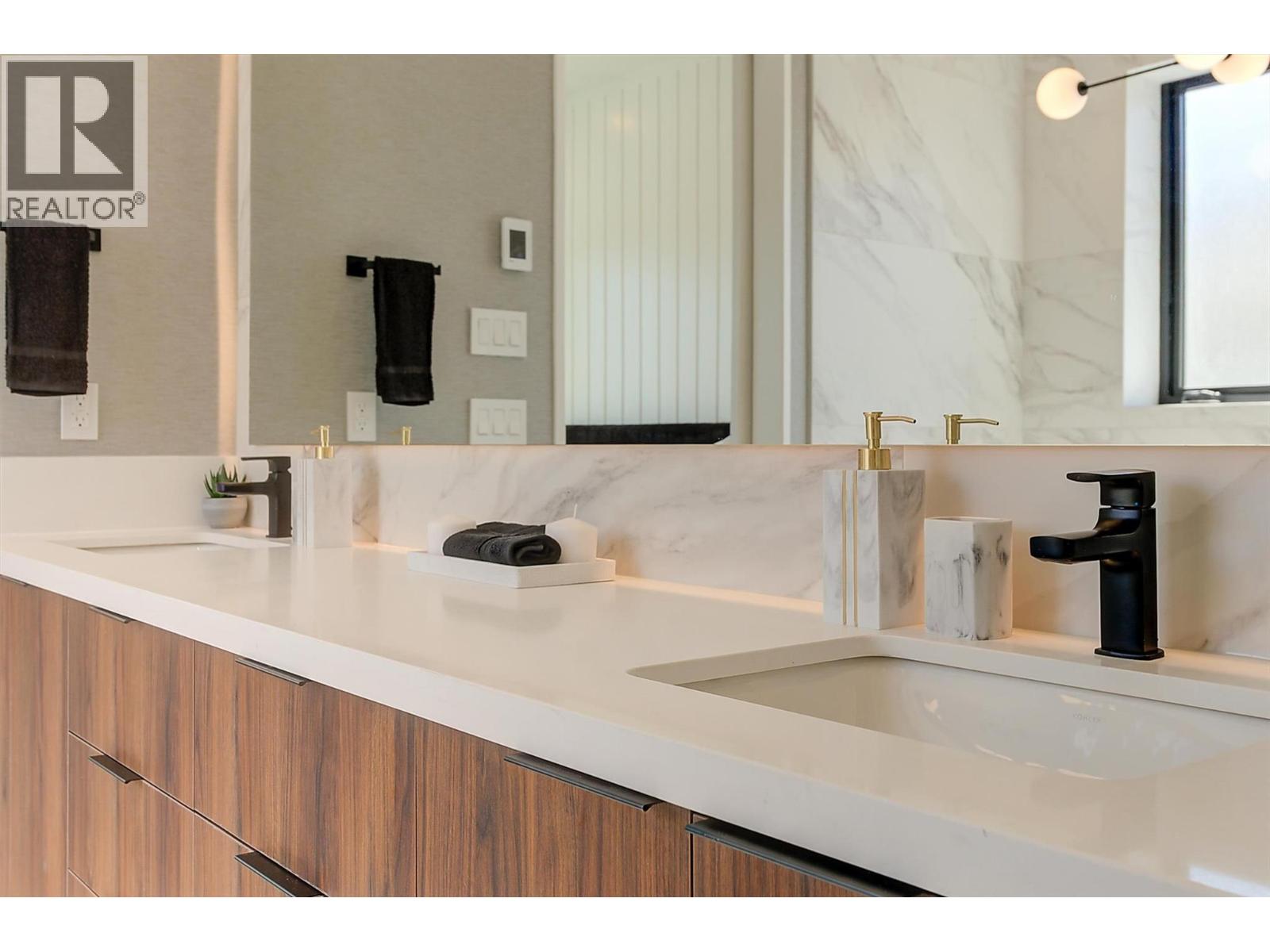 Modern Luxury with Legal Suite & Resort-Style Backyard. Experience refined living in this exceptional 5-bedroom, 5-bathroom home, thoughtfully designed with high-end upgrades and contemporary finishes throughout. Built to Step 4 Building Code standards, this residence delivers outstanding energy efficiency, comfort, and long-term value. Step into your private backyard oasis, featuring a saltwater pool, hot tub, storage building, and a fully equipped outdoor kitchen (to be installed), perfect for entertaining or relaxing at home. Enjoy lake views from the south-facing deck. The open-concept kitchen, dining, and living areas are designed for effortless hosting. The luxurious primary suite offers its own private deck and spa-inspired ensuite, while two additional upstairs bedrooms share a stylish Jack-and-Jill bathroom. Downstairs, a theatre-ready family room is complemented by a coffee bar, wine fridge, and separate fridge/freezer — ideal for elevated gatherings. A legal one-bedroom suite provides an excellent mortgage helper or private accommodation for guests or extended family. Additional features include a heat pump, security system with cameras, and a New Home Warranty commencing upon completion for the new homeowner. Furniture may be purchased separately. Quick possession is available. Don’t miss this rare opportunity to own a move-in-ready luxury home that seamlessly blends comfort, functionality, and upscale amenities in one exceptional package. Price plus GST. (id:2469)