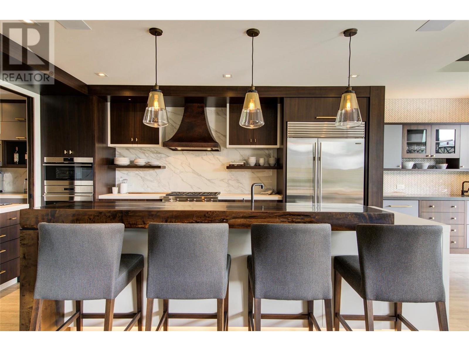 Exclusive waterfront community along the shores of Okanagan Lake. Paradise Estates is the ideal location for those in search of a beautiful home in a resort-style community with close proximity to world-class wineries and golf courses. This architecturally crafted contemporary home was designed with entertaining in mind offering seamless transitions from indoor to outdoor living and a rooftop patio. Superior craftsmanship and materials can be found throughout. Open-concept design with oversized windows on all levels capture the views and flood the space with natural light. Large Nano doors from the main living area allow for ease of access to the partially covered patio with outdoor kitchen. Beautifully-appointed chef’s kitchen featuring professional-grade appliances and custom live-edge counter with bar seating. A highlight of this floor is the temperature-controlled wine room finished with stone and glass and ready for storing approx. 200 bottles of your most prized vintages. On the second level you’ll discover a luxurious master retreat with its own private balcony & a truly spa-inspired ensuite. Two additional bedrooms and a flex space complete this level. Take an elevator to the third-story rooftop patio to enjoy the hot tub, wet bar, and outdoor shower. Residents of Paradise Estates will enjoy access to 400ft of sandy shoreline, deep-water boat moorage, a saltwater pool, water slide, central entertainment area that includes a putting green, firepit & waterfall features. (id:2469)
