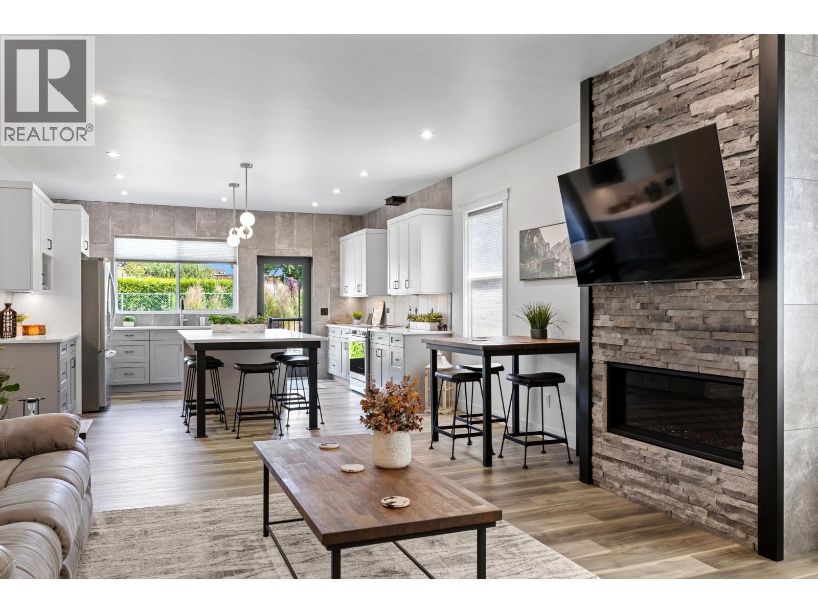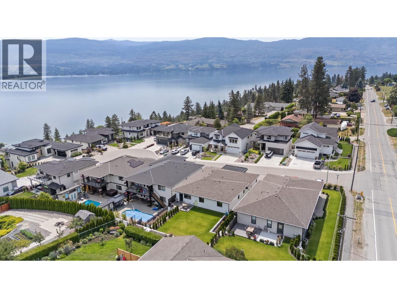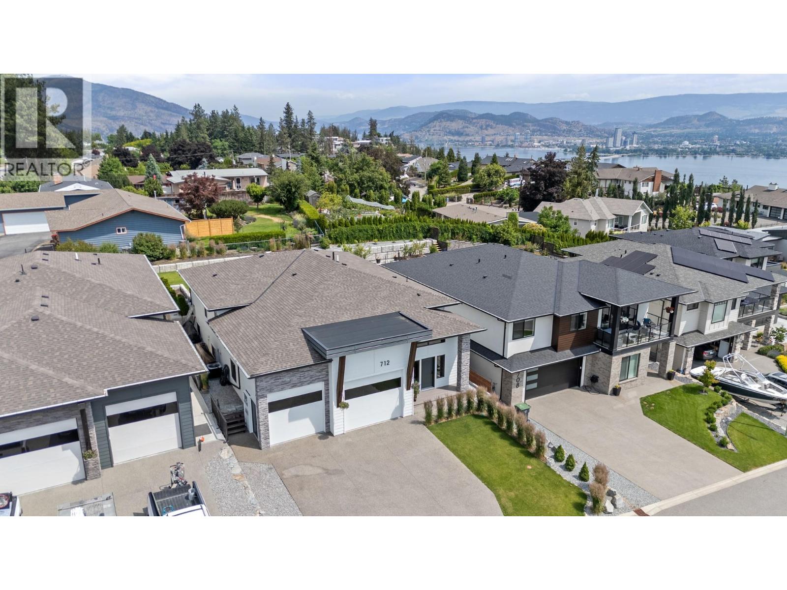 Perched in the highly sought-after Lakeview Heights neighbourhood, this home offers an elevated position with beautiful lake views, quick access to town & exceptional garage space—an ideal combination for modern Okanagan living. With 3,420 sq. ft. of thoughtfully designed space, this home delivers outstanding versatility, including a 1-bedroom legal suite, an oversized garage & a backyard with room for a pool. The main level is bright & welcoming, featuring an open-concept living area anchored by a cozy gas fireplace & seamless access to the backyard & covered patio—perfect for indoor-outdoor entertaining. The spacious, family-friendly kitchen is designed for gathering, complete with a large work island, ample cabinetry & generous storage. The primary bedroom offers a private retreat with a walk-in closet & a luxurious 5-piece ensuite showcasing a double vanity, soaker tub & separate tiled shower. Two additional bedrooms, a full bathroom, a convenient powder room & laundry complete the main floor. Downstairs, the lower level includes a rec room, an additional bedroom & a full bathroom for the main home, along with a self-contained 845 sq. ft. legal suite featuring its own entrance & laundry—ideal for extended family or excellent rental income potential. Set in a prime Lakeview Heights location just minutes to shopping, schools, wineries, beaches and downtown West Kelowna, this home delivers elevated views, everyday convenience and space to grow—all in one exceptional package. (id:2469)