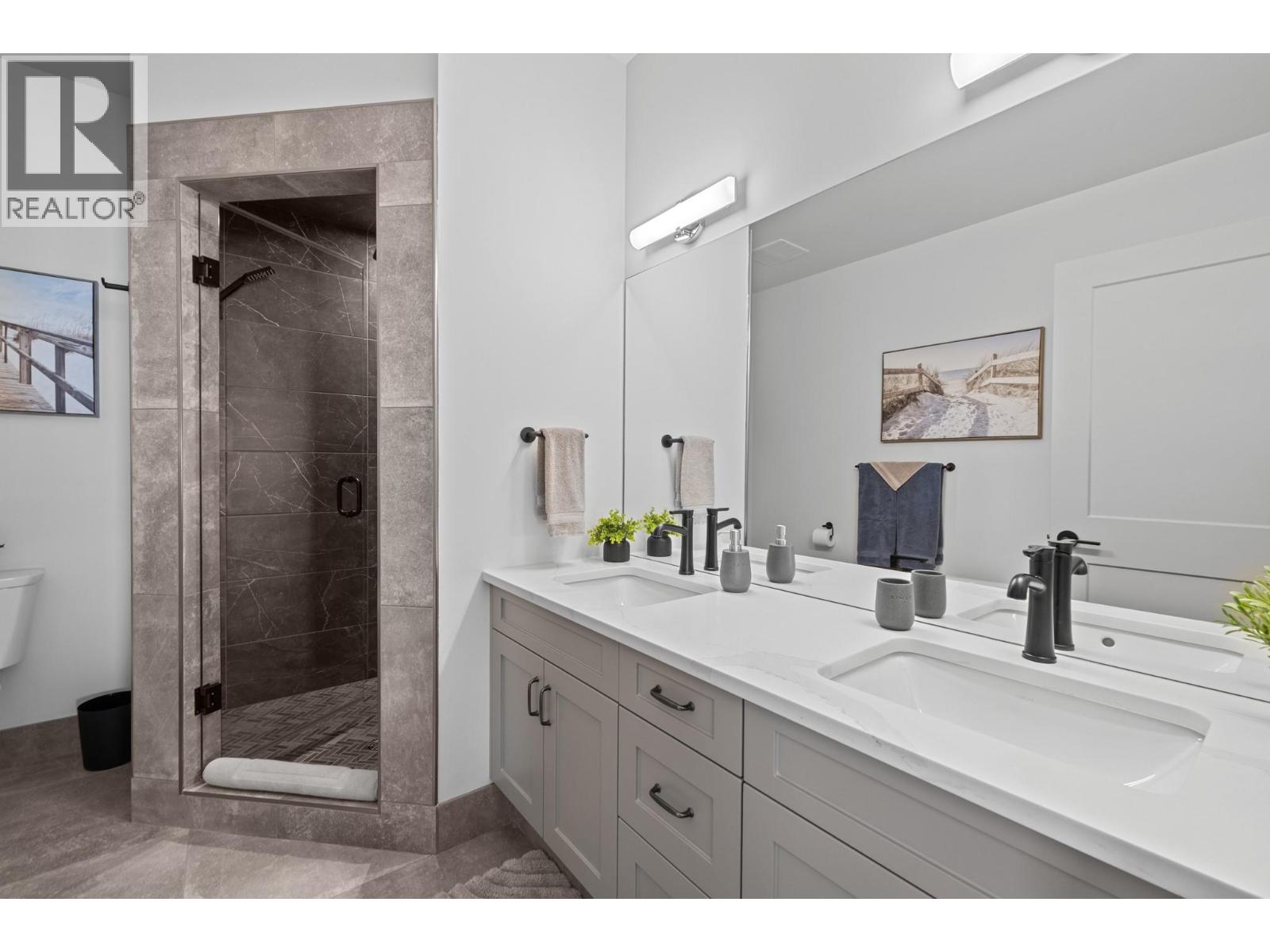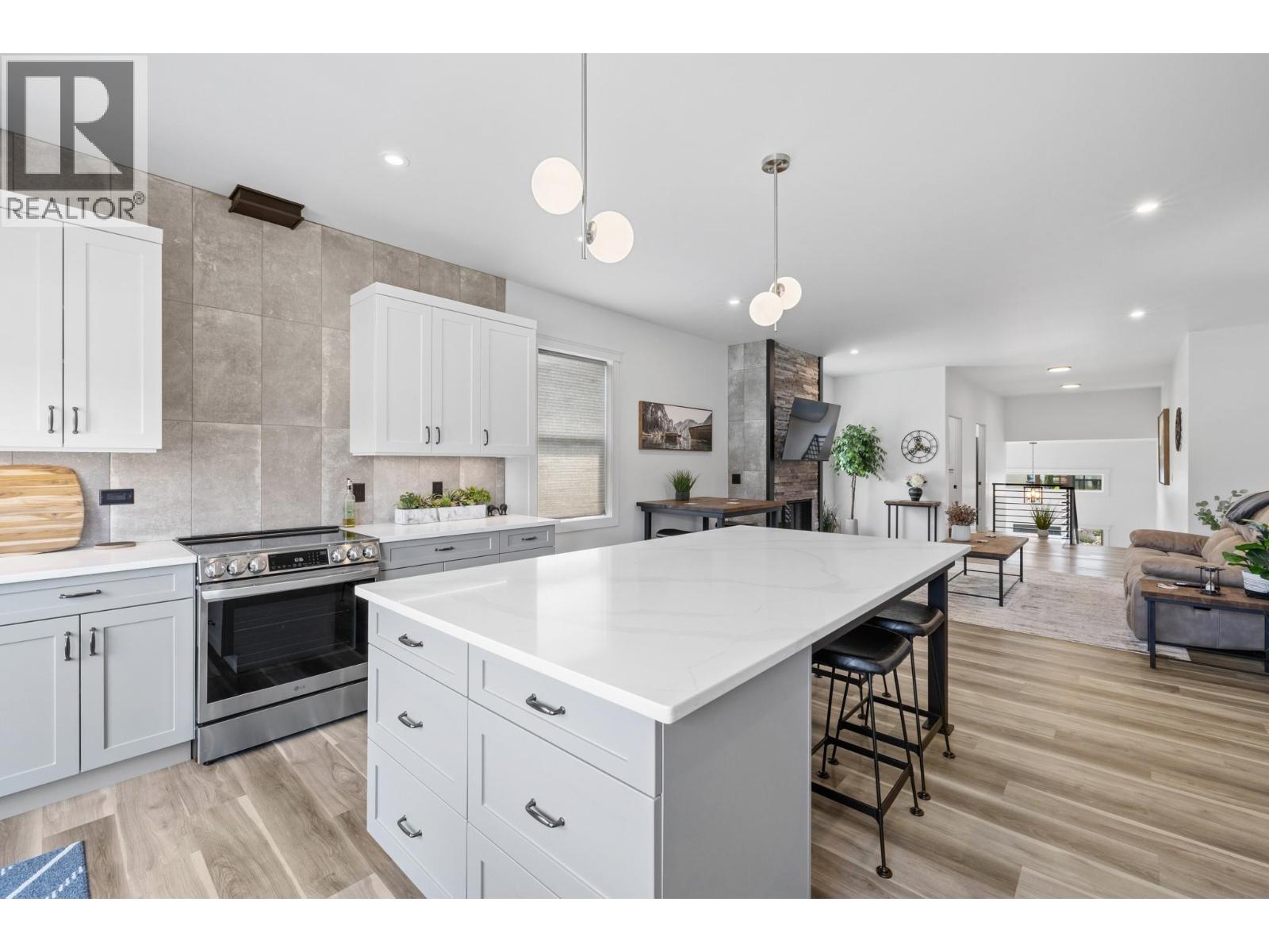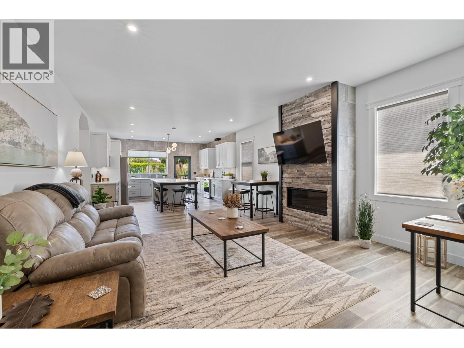 Perched in the highly sought-after Lakeview Heights neighbourhood, this home offers an elevated position with beautiful lake views, quick access to town & exceptional garage space—an ideal combination for modern Okanagan living. With 3,420 sq. ft. of thoughtfully designed space, this home delivers outstanding versatility, including a 1-bedroom legal suite, an oversized garage & a backyard with room for a pool. The main level is bright & welcoming, featuring an open-concept living area anchored by a cozy gas fireplace & seamless access to the backyard & covered patio—perfect for indoor-outdoor entertaining. The spacious, family-friendly kitchen is designed for gathering, complete with a large work island, ample cabinetry & generous storage. The primary bedroom offers a private retreat with a walk-in closet & a luxurious 5-piece ensuite showcasing a double vanity, soaker tub & separate tiled shower. Two additional bedrooms, a full bathroom, a convenient powder room & laundry complete the main floor. Downstairs, the lower level includes a rec room, an additional bedroom & a full bathroom for the main home, along with a self-contained 845 sq. ft. legal suite featuring its own entrance & laundry—ideal for extended family or excellent rental income potential. Set in a prime Lakeview Heights location just minutes to shopping, schools, wineries, beaches and downtown West Kelowna, this home delivers elevated views, everyday convenience and space to grow—all in one exceptional package. (id:2469)