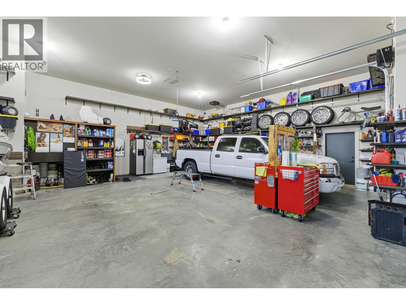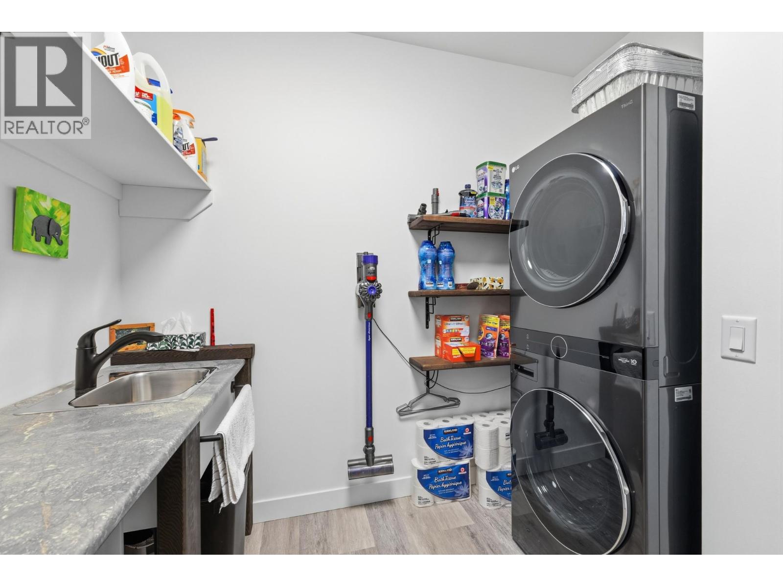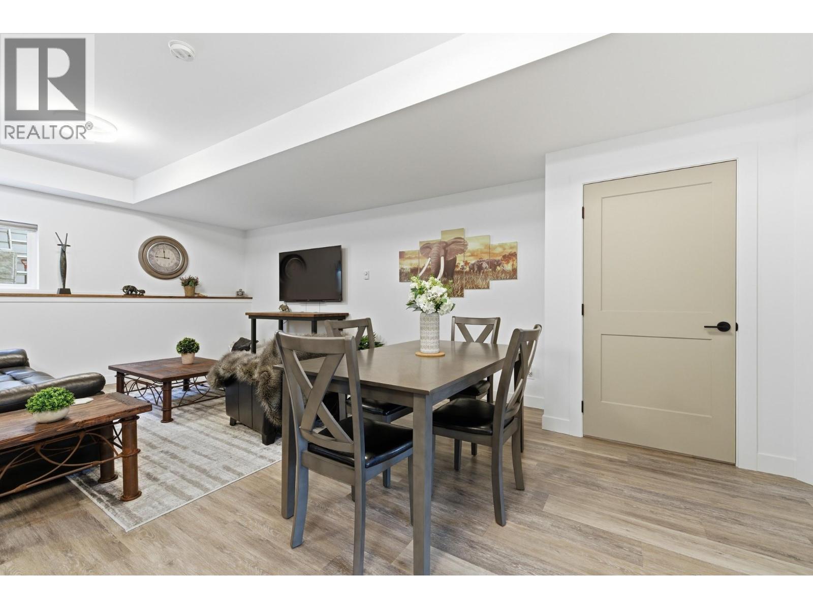 Luxury living in sought after Lakeview Heights - this stunning home truly has it all. Designed to impress, oversized windows showcase beautiful mountain views, while luxury vinyl plank flooring, sleek modern fixtures, and abundant storage create a refined yet functional living space. The chef-inspired kitchen features an oversized island, quartz countertops, stainless steel appliances, and ample cabinetry, seamlessly flowing into the open-concept dining and living areas highlighted by a tile-surround fireplace. The primary suite is a private retreat, complete with a custom walk-in closet and a spa-like ensuite offering dual sinks, a free-standing soaker tub, and a tiled walk-in shower. The main level also includes a second bedroom with cheater ensuite access to the 4-piece bath and a spacious laundry room with sink and folding area. Downstairs, enjoy a large rec room, 3-piece bathroom plus a versatile basement suite that can function as part of the home or as a separate 1 or 2 bedroom rental with enhanced soundproofing, full kitchen, 4-piece bath, and open-concept living area. Completing the package is an impressive 1,100 sq. ft. oversized triple garage, prewired for a 220V EV charger and heater, with space for a workshop. Ideally located within walking distance to local wineries, shopping, and sports amenities. (id:2469)
