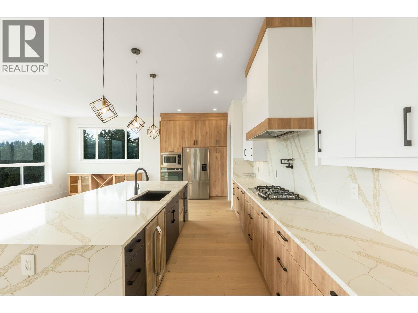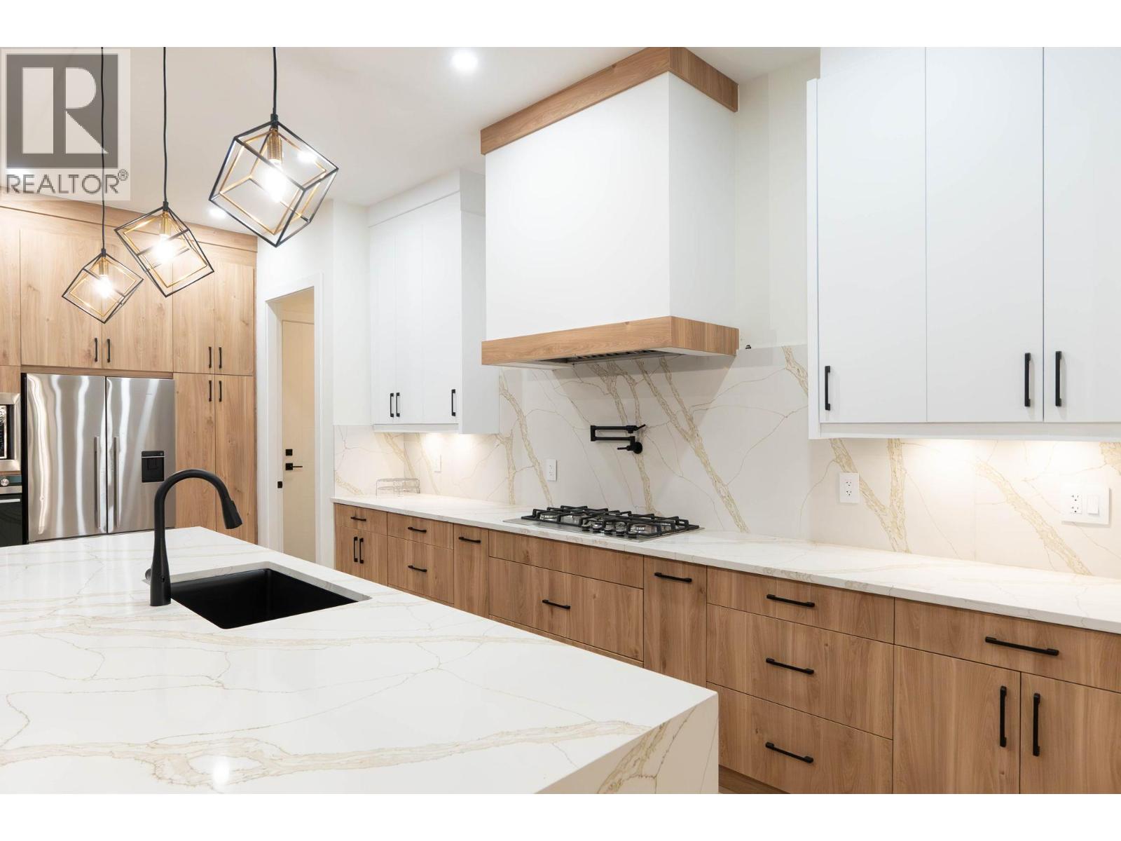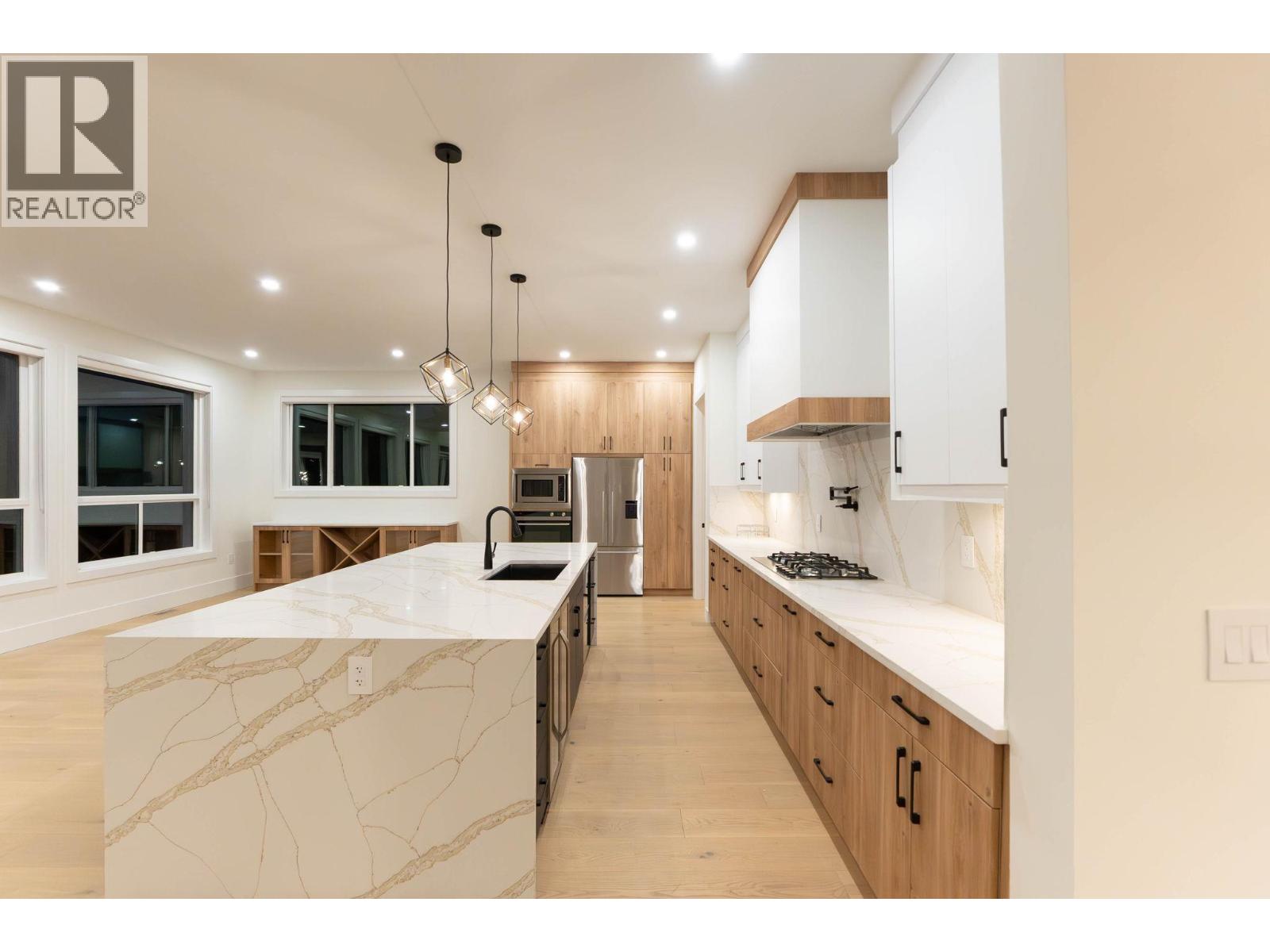 This stunning brand new modern home features high ceilings and an open concept kitchen with a massive island, perfect for entertaining. The main floor includes a versatile room that can serve as an office or a bedroom, alongside a full bathroom for convenience. On the second level you'll find four spacious bedrooms and three full bathrooms, including a luxurious primary suite with a feature wall, an ensuite boasting a double vanity, a freestanding tub, and a separate shower. The lower level includes a legal two-bedroom suite and a studio suite, ideal for guests or rental income. Enjoy a private backyard with breathtaking mountain views, all while being close to schools, parks, and just minutes from downtown Kelowna. This is contemporary living at its finest. (id:2469)